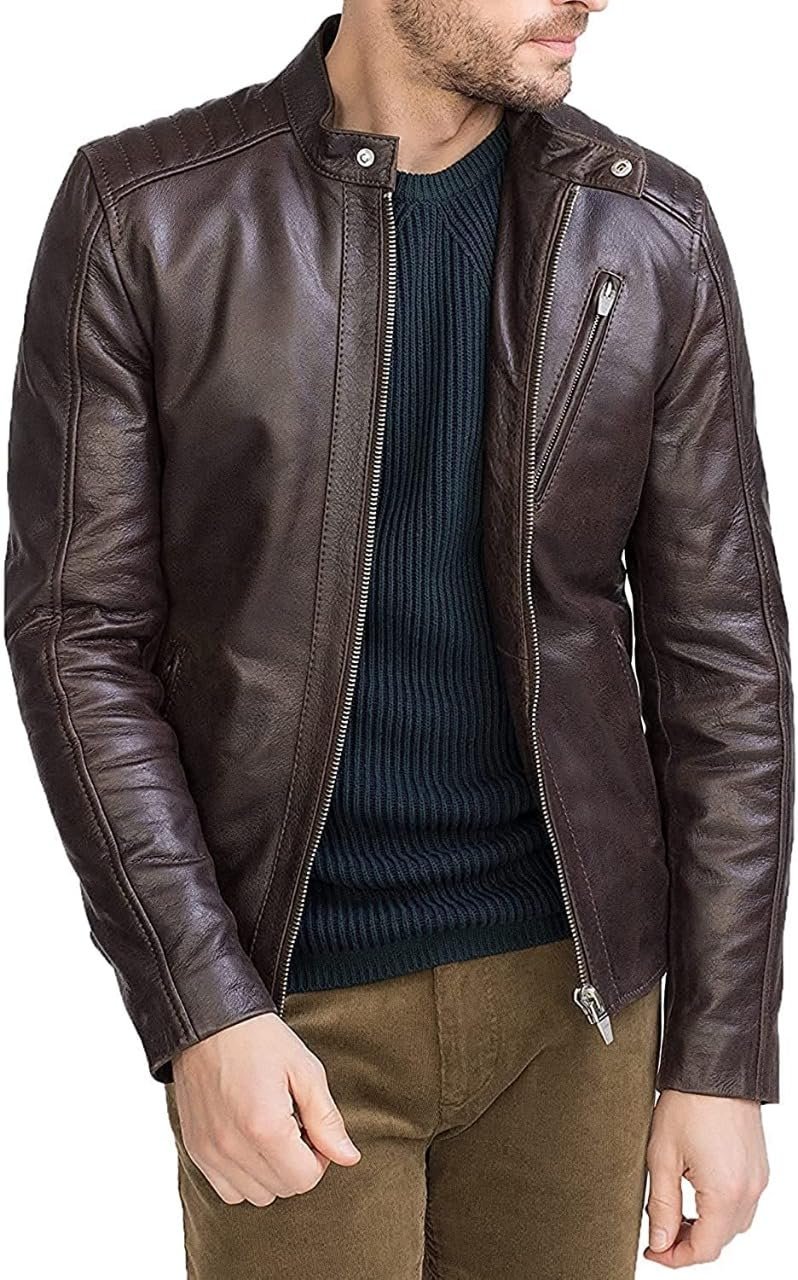 Embrace a rugged yet sophisticated look with this premium leather jacket. Crafted from high-quality, supple leather, this jacket exudes timeless style and durability. The sleek, form-fitting silhouette is designed to flatter your physique, while the zippered front closure and multiple pockets offer both style and functionality. Whether worn over a casual outfit or paired with dressier attire, this versatile jacket will elevate your ensemble with an edgy, masculine appeal. Expertly crafted with meticulous attention to detail, this leather jacket is a wardrobe essential that will keep you looking sharp for seasons to come. Invest in this timeless piece and experience the perfect blend of fashion and comfort.