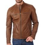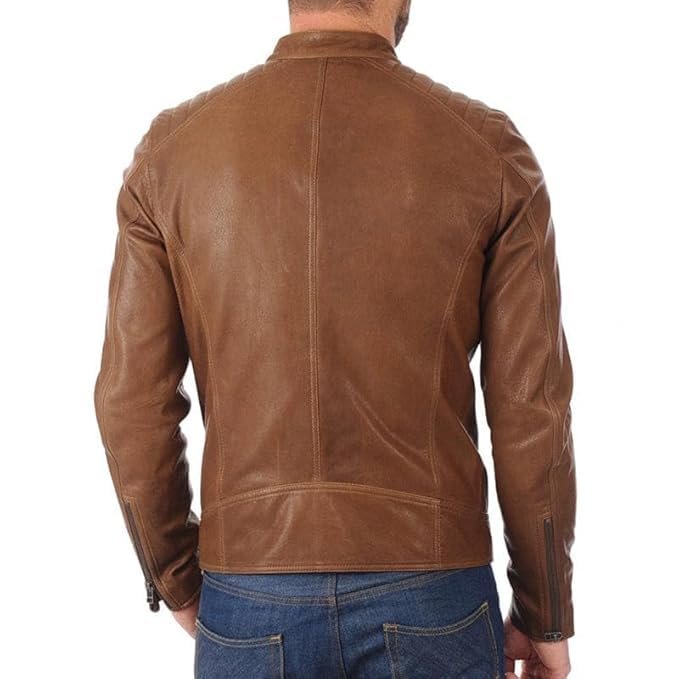 Elevate your style with this ruggedly handsome leather jacket. Crafted from premium, buttery-soft leather, it boasts a classic biker silhouette with zippered pockets and cuffs for a touch of edge. The sturdy full-zipper front ensures a snug, comfortable fit, while the stand collar adds a hint of sophistication. Whether paired with jeans for a casual weekend look or dressed up with trousers for a night out, this versatile jacket is sure to become a staple in your wardrobe. Invest in timeless quality and embrace the epitome of cool, confident style.