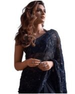 Sidhidata Georgette Full Sequence work saree with lace border and unstitched blouse piece