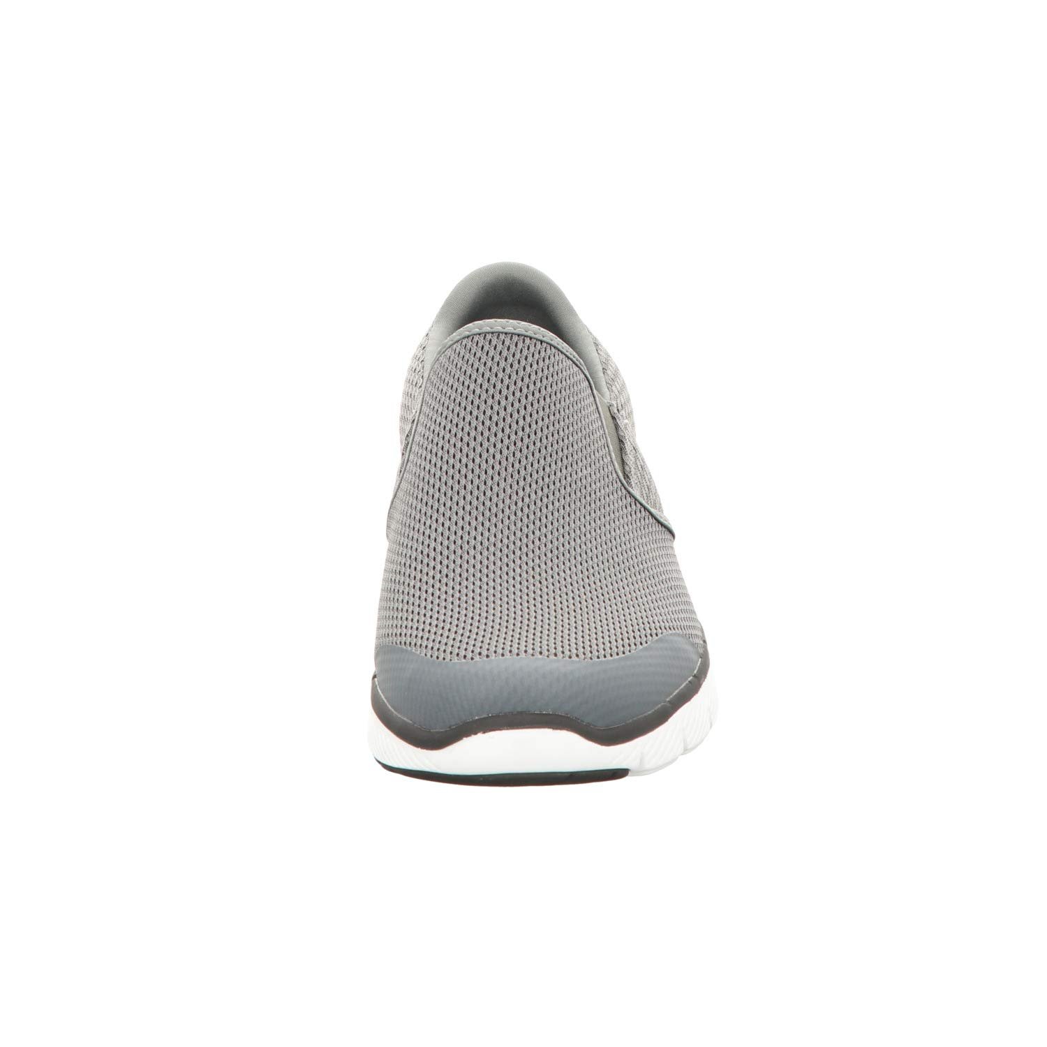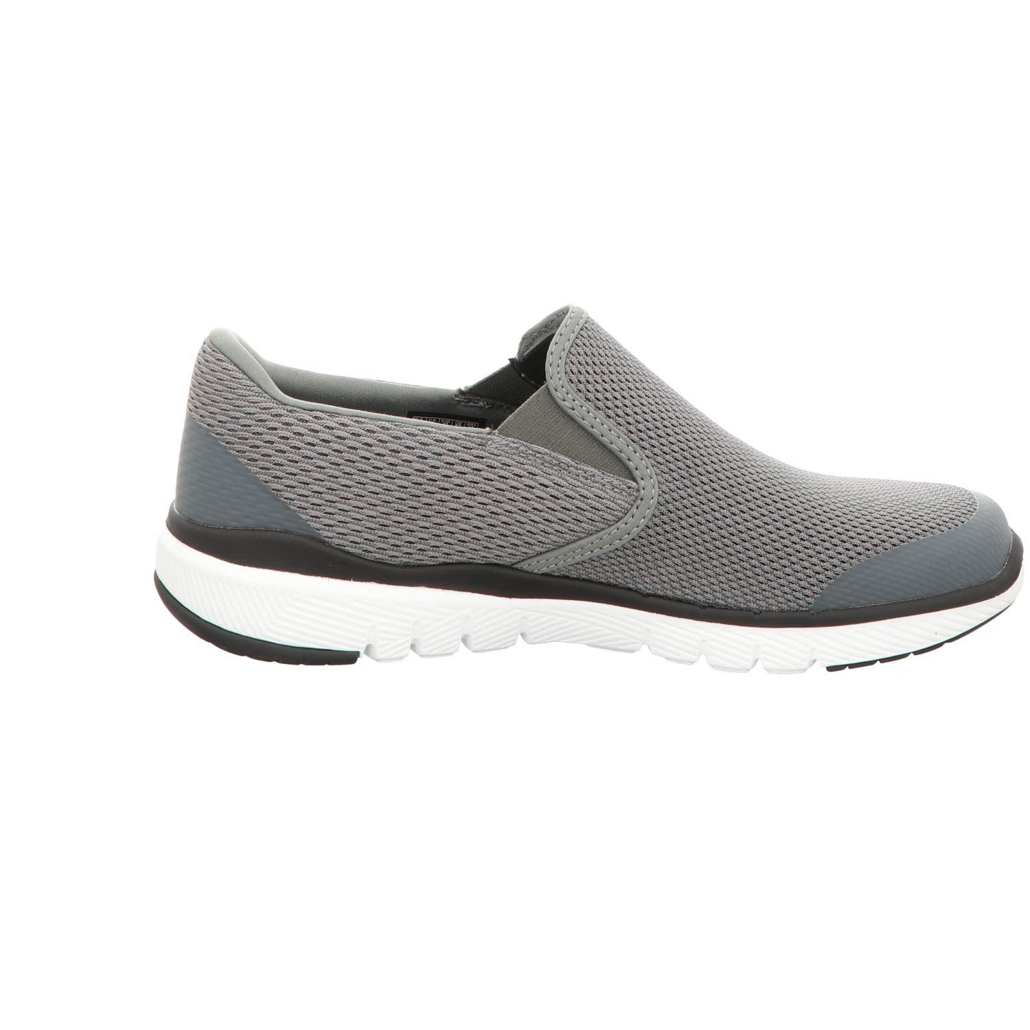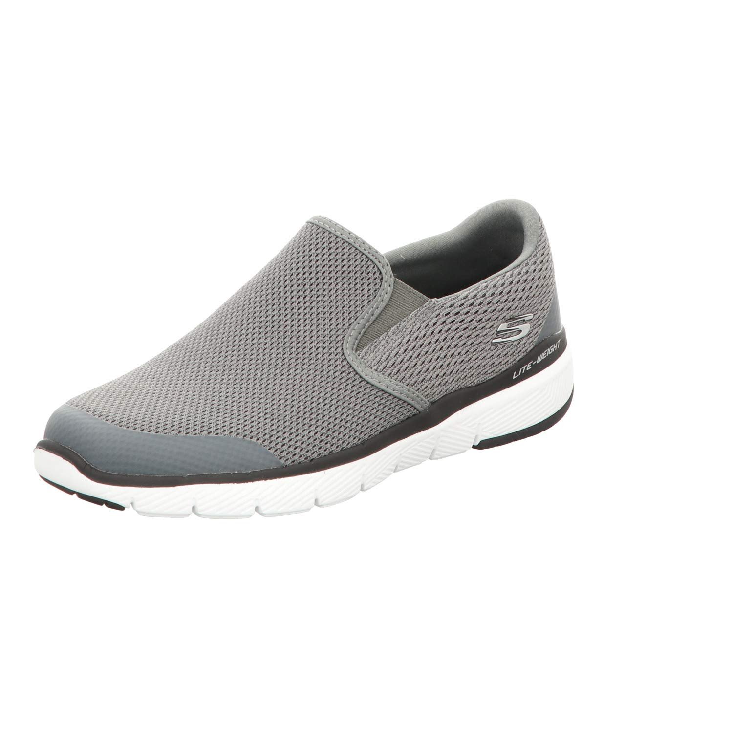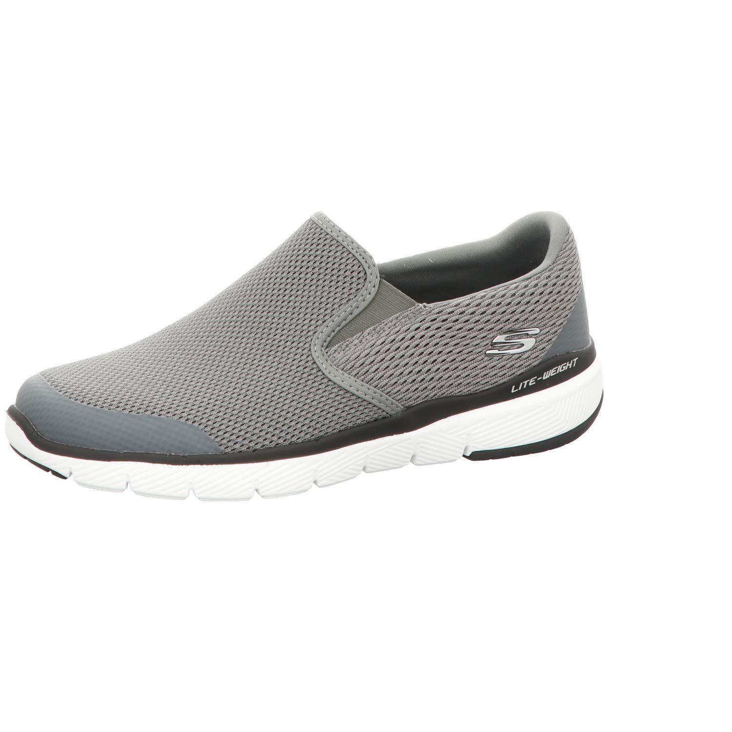 Soft woven athletic knit mesh nearly one piece fabric upper Smooth 3D printed synthetic overlays at toe and heel for stability Slip on athletic training sneaker design Stitching accents Side seam detail with stitched edging Synthetic wraparound heel overlay for added stability Side S logo Dual side elastic fabric panels for easy slip on fit Padded collar Soft fabric shoe lining Air Cooled Memory Foam cushioned comfort insole Lightweight flexible shock absorbing midsole Flexible rubber traction outsole