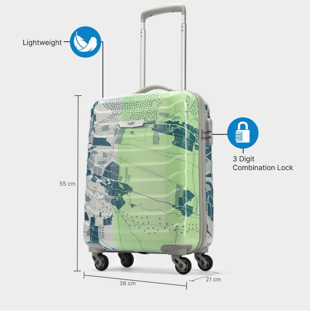 STYLISH AND LIGHTWEIGHT: Move in style with Skybags Trooper, a premium hard luggage trolley with a highly trendy print. This lightweight trolley bag is made of durable and scratch resistant ABS material which makes it sturdy, waterproof and impact resistant.