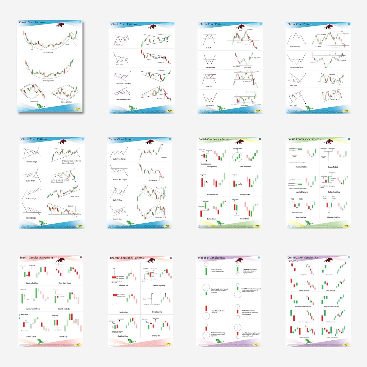 Enhance your trading skills: The set includes 6 out of 12 Classic Chart Patterns, 2 out of 12 Bullish Candlestick Patterns, 2 out of 12 Bearish Candlestick Patterns, and 2 out of 12 Candlestick Patterns. By studying and mastering these patterns, you can enhance your trading skills and gain a competitive edge in the stock market.