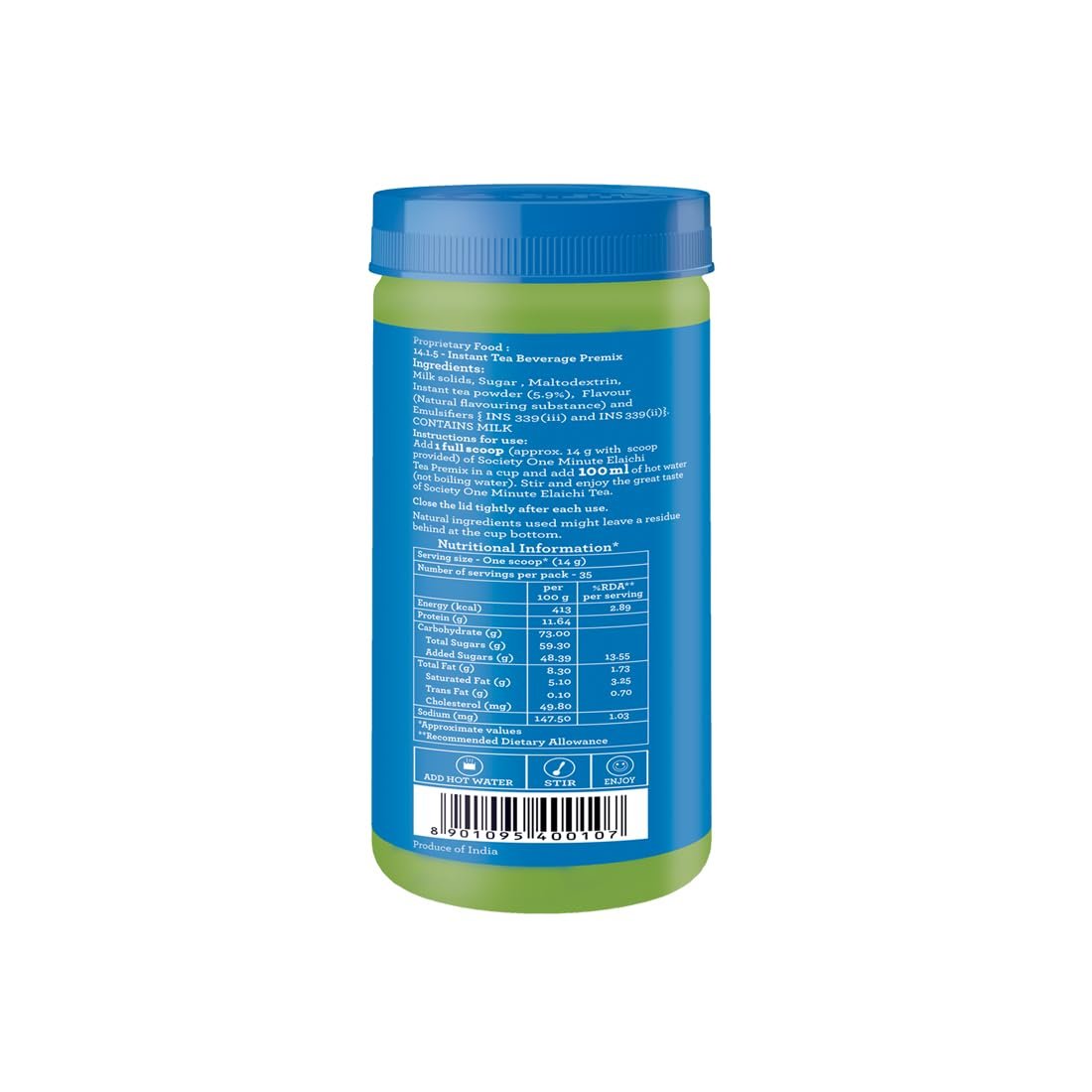 Society One Minute Tea | Elaichi Flavour | Jar | Made with Cardamom | Flavoured Instant Tea | 500g | Pack of 1