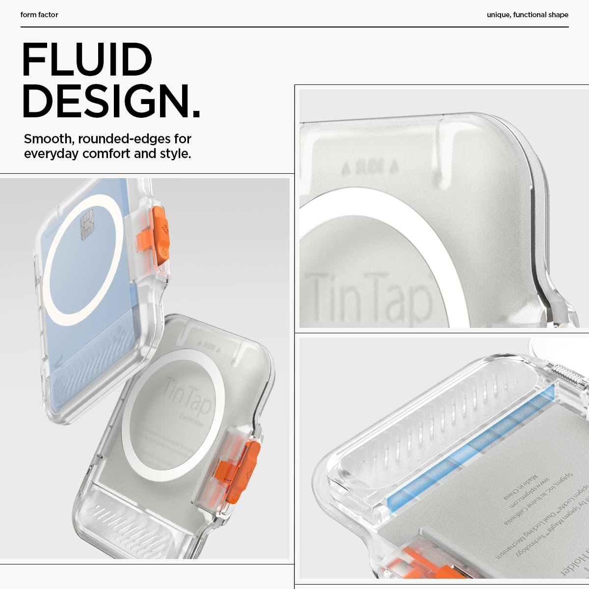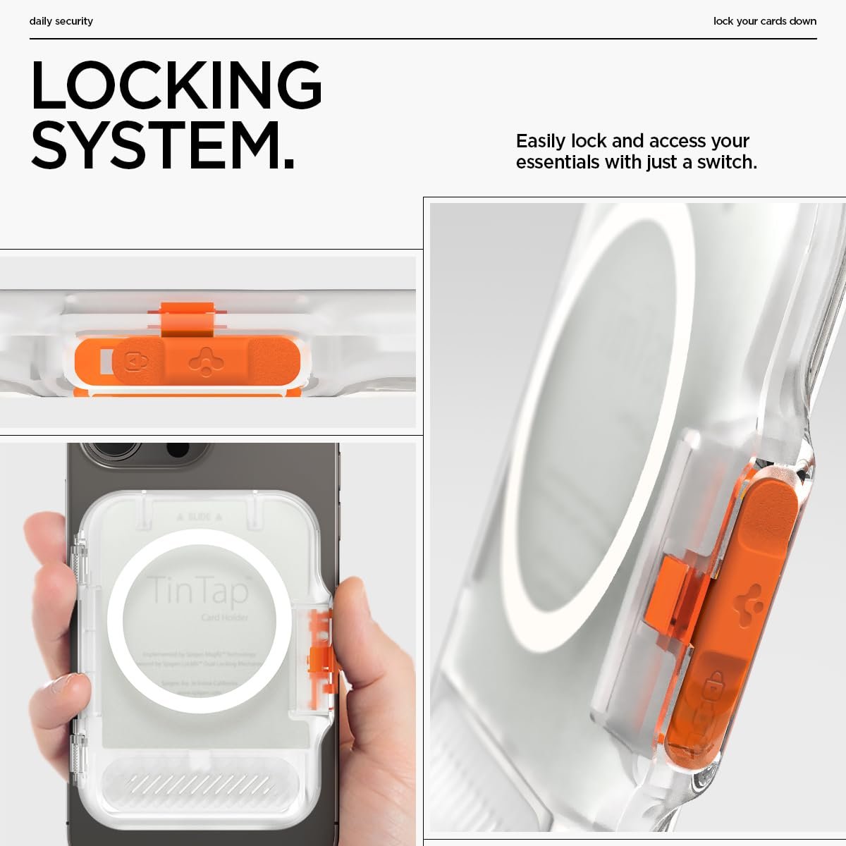 Can securely protect the cards by sliding the closure button on the TinTap MagFit+ to open and close.