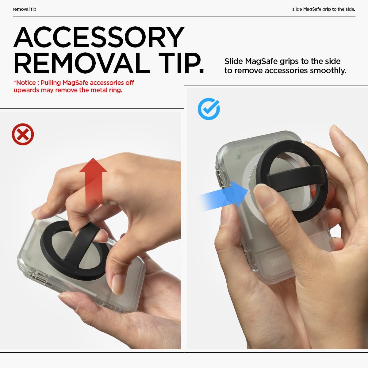 Slim, yet rigid PC frame with silicone magnetic ring For non-slip MagSafe attachment securely stays on your iPhone