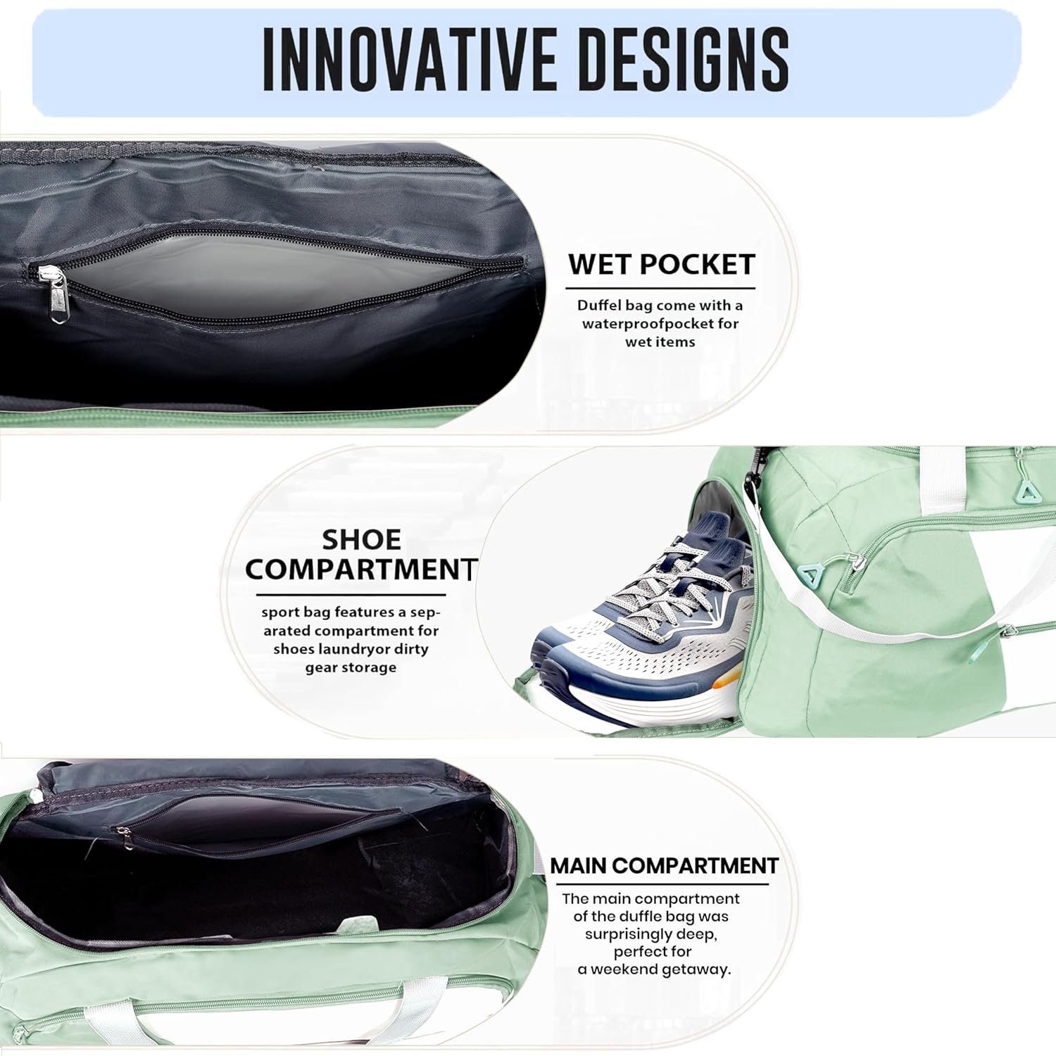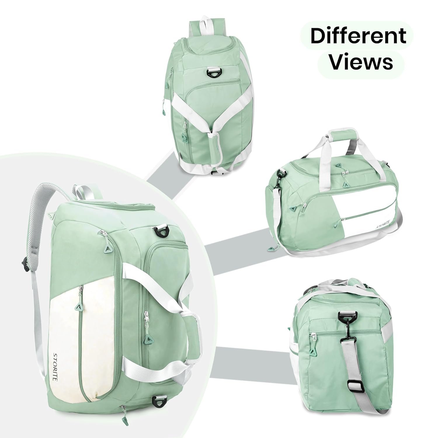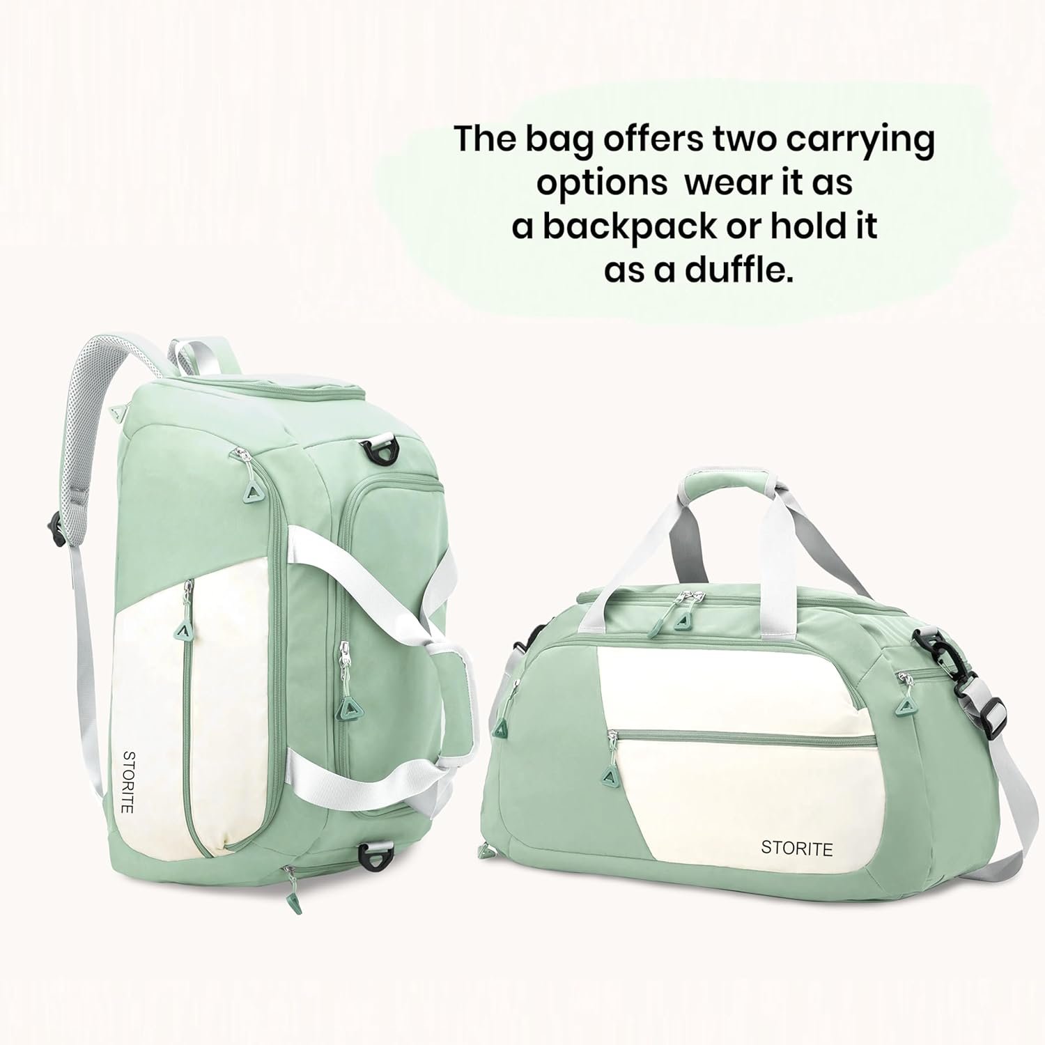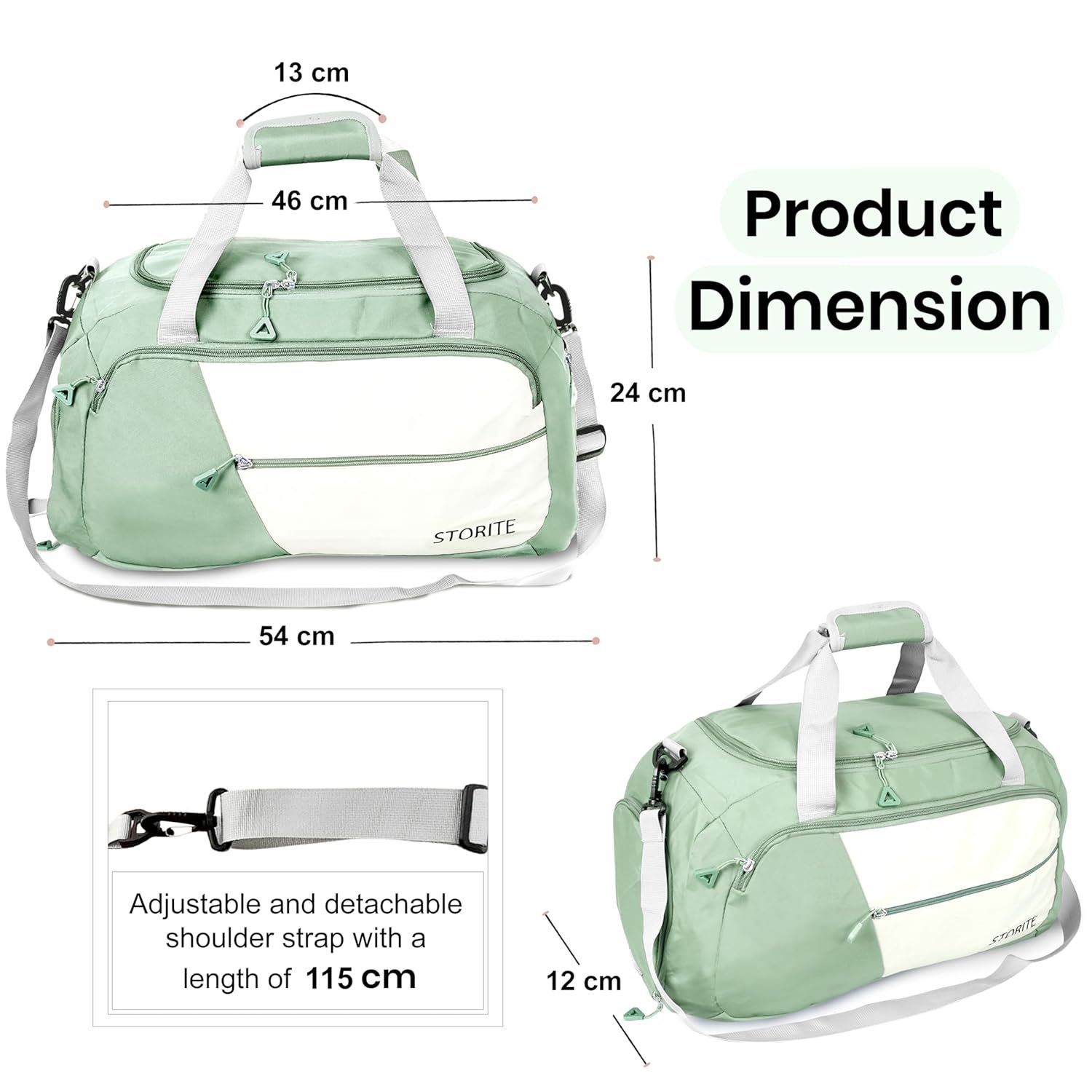 Storite Nylon 54 Cm Imported Multi Purpose Travel Duffle Bag for Women with Dry and Wet Pocket, Lightweight Waterproof Backpack Carry Luggage Bag with Shoe Compartment (Pista Green, 54 x 12 x 24 cm)