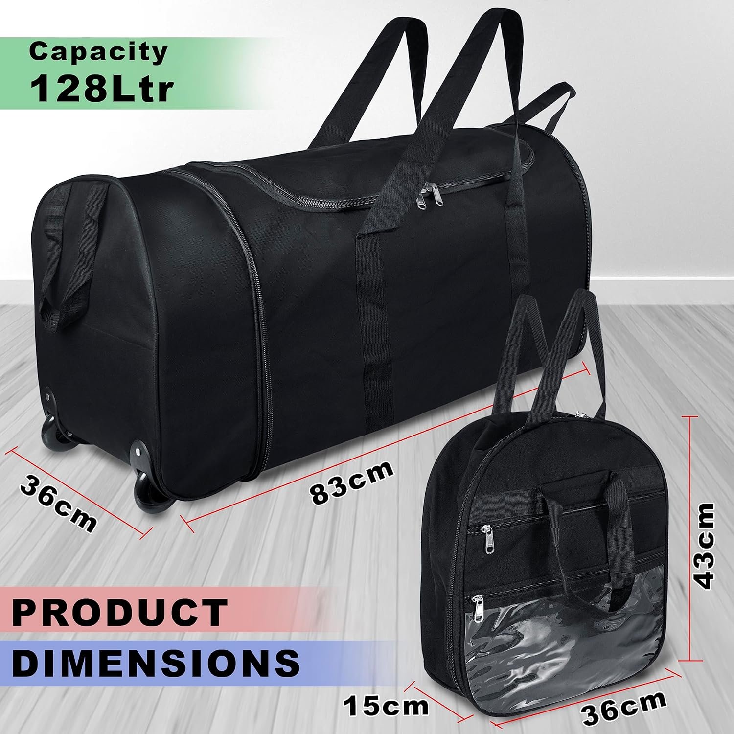 Item Dimensions : Height : 43cm, Width : 36cm, Length : 83cm , Liter : 128 L ,Water Resistance (but not Waterproof)