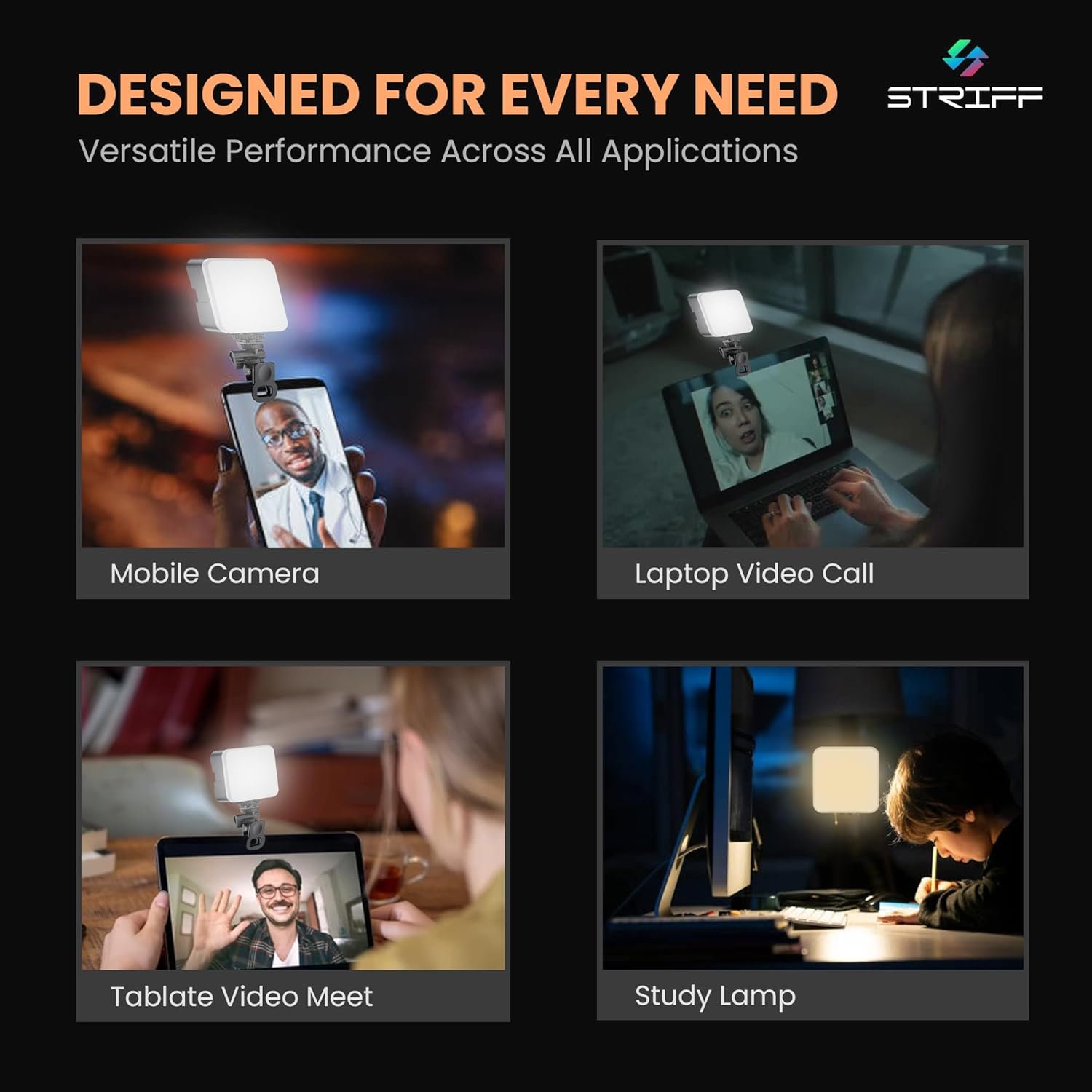 Features three easy-to-use adjustment buttons for brightness and color temperature. Designed to pair seamlessly with Striff tripods and selfie sticks, it is ideal for live streaming, makeup tutorials, video recording, and virtual meetings.
