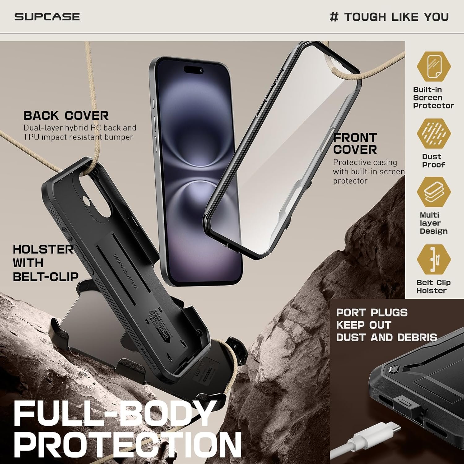 360° full-body coverage with 20ft drop protection. Made with shock-absorbing TPU adhering to US military-grade standards. Proven durability with outdoor activities with sports and hiking as well as heavy-duty environments like construction sites.
