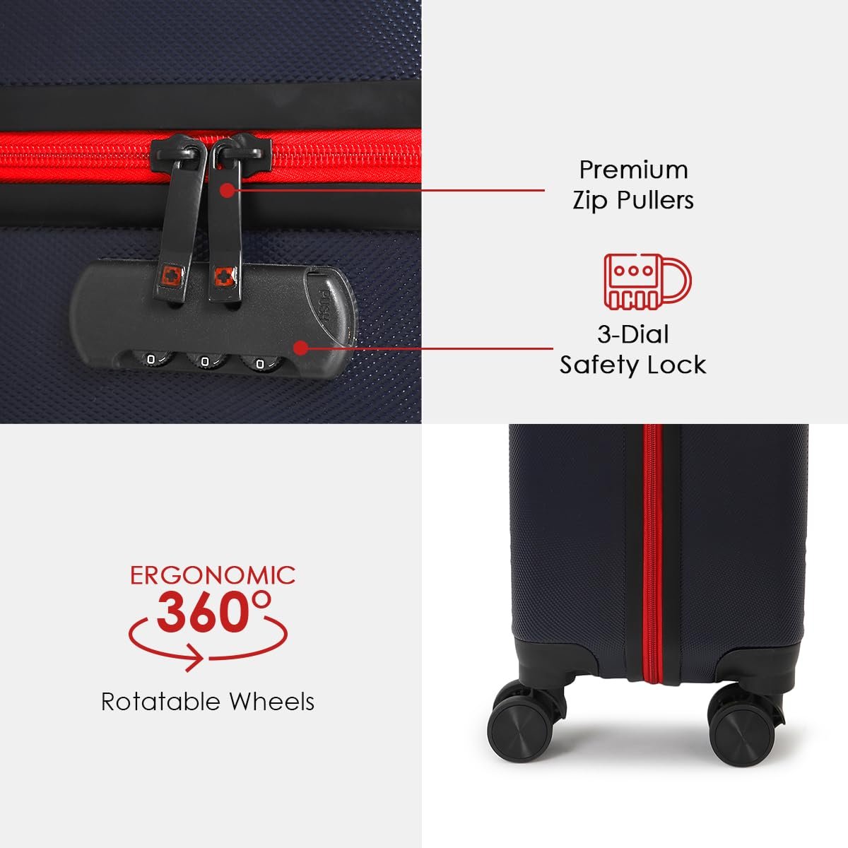 Smooth Maneuverability: Equipped with ergonomic 360° rotatable wheels for effortless navigation through airports and tight spaces.