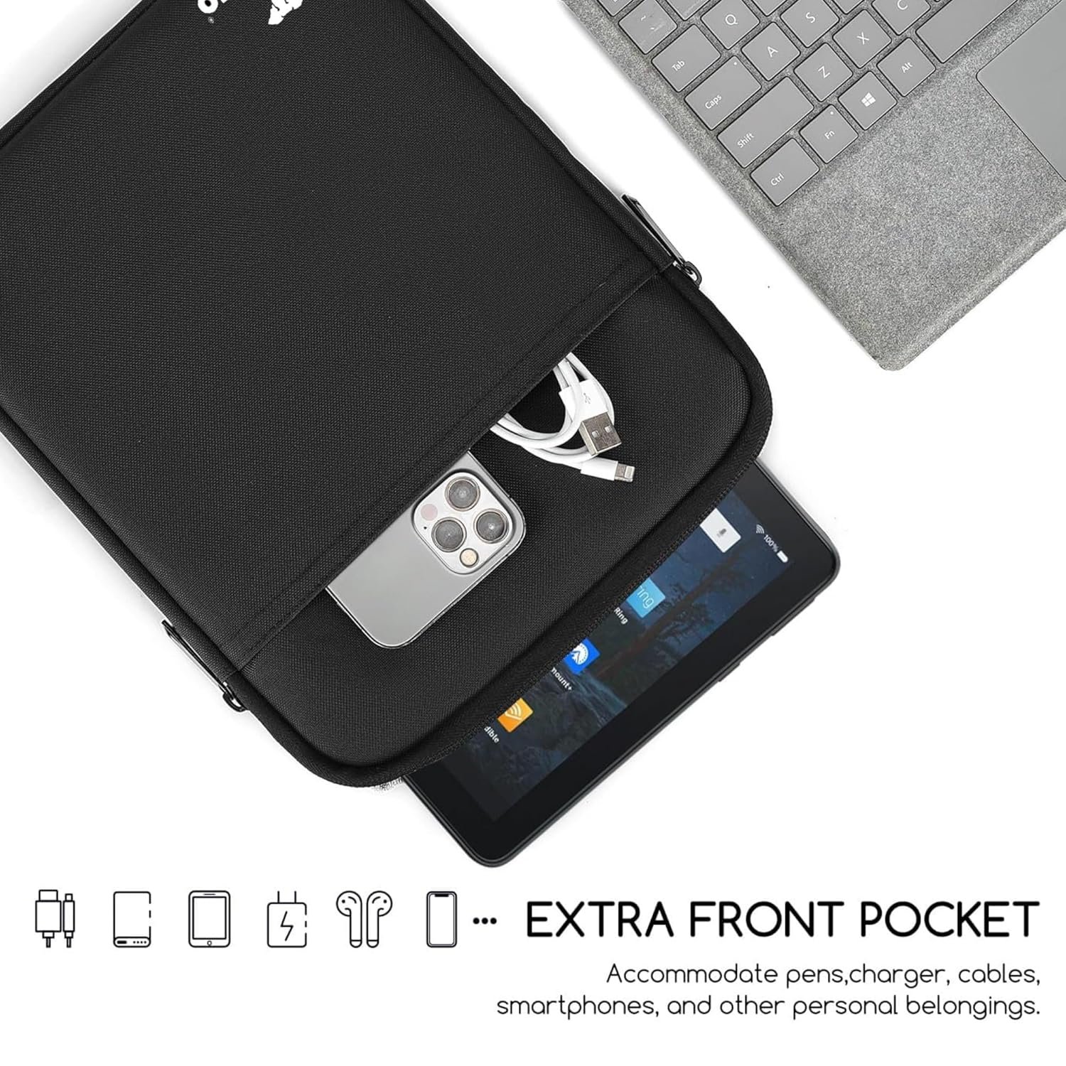 Universal pouch, made for 11 inches Tablets.Main zip compartment for 11 inch tablet, front pocket for small accessories.Made of polyester for exterior and soft lining for interior. Offering good protection to your device.The exterior material helps prevent your essentials from getting wet.Compact & lightweight, you can handheld it or slide it into tote bag or backpack.