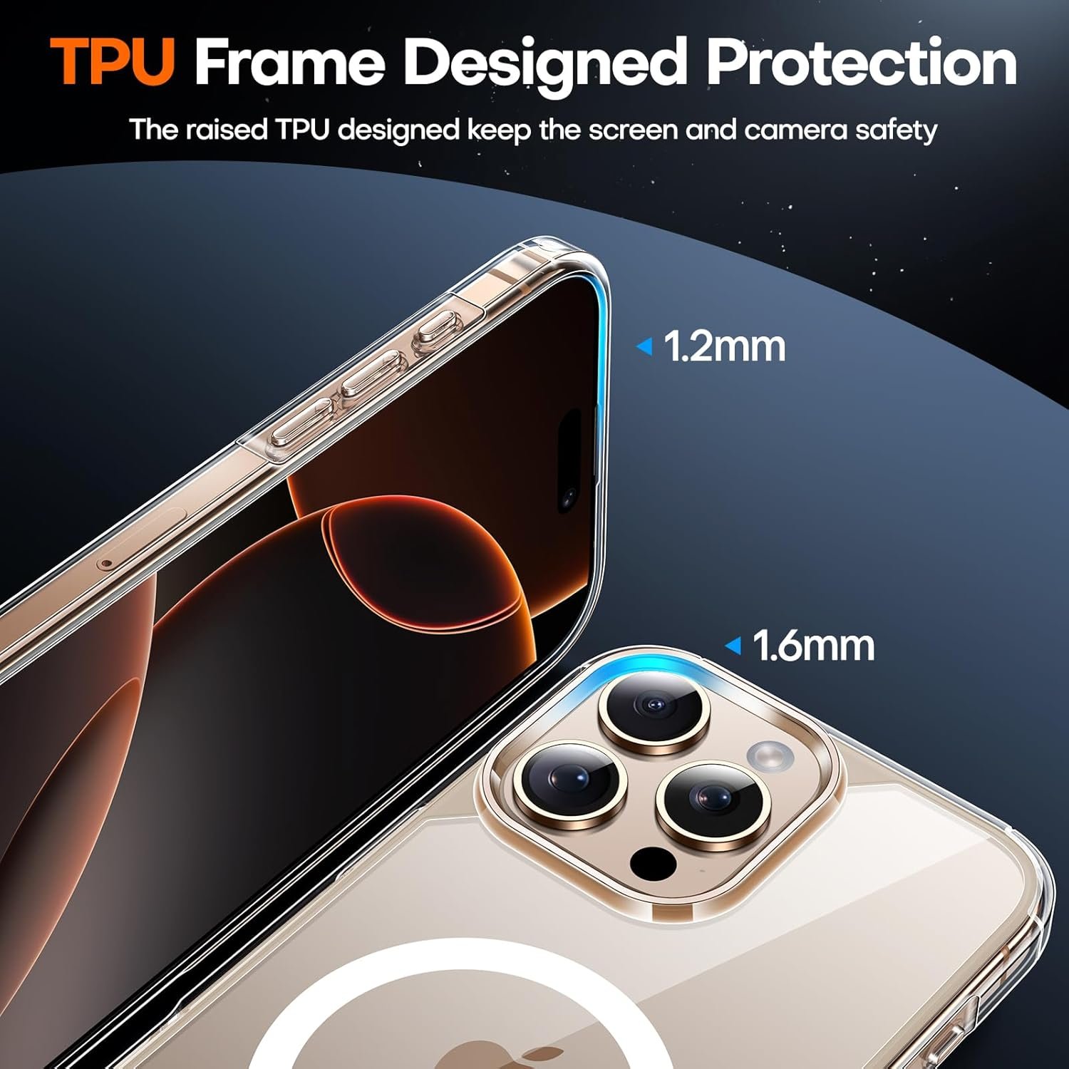 Shockproof Design: Devised with meticulous precision, TAURI for iPhone 16 Pro combines a soft-frame and hard PC back cover with built-in air cushion anti-fall construction. Experience upgraded multiple layers of shock protection, it deftly absorbs shocks, effectively shielding your device from falls of up to 15 feet
