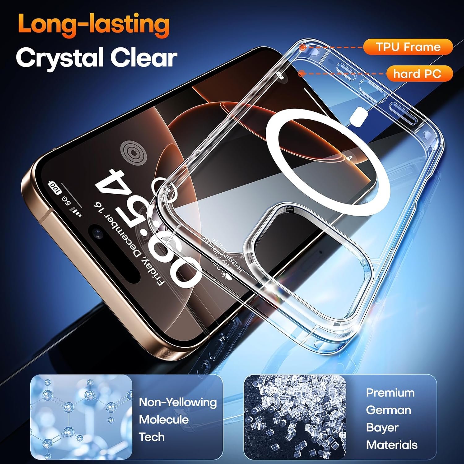 Premium Materials, Cozy Hold: Designed for iPhone 16 Pro made of new materials from Germany, wrapped in a sophisticated scratch-resistant and anti-yellowing coating ensure the clear case stays new. its sleek contours are orchestrated for ergonomic one-handed maneuverability and unobtrusive portability. Experience maximal protection without compromise, as this minimalist masterpiece seamlessly integrates into your lifestyle