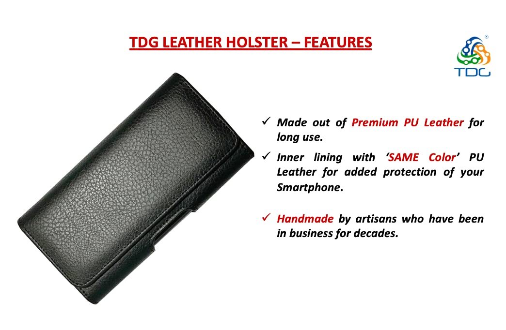BUILD & MATERIAL USED : The TDG Vertical mobile phone holster pouch is made with high-quality dirt resistant Faux Leather and lined with soft felt for interior added protection against scratches. The magnetic closure flap will make sure nothing falls out. This mobile belt pouch for men holds your smartphone tightly and fits snugly, is lightweight, compact and adds no bulkiness at all. The elastic stretch bands on both sides allow extra room for slim case on.