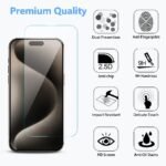 Top-notch Quality: This ultra-thin tempered glass for the iPhone 16 pro max is crafted with precision laser cutting, featuring smooth polished edges and privacy screen that are perfectly rounded and works seamlessly with 3D touch. The tempered glass for the iPhone 16 pro max ensures complete compatibility with touchscreen sensitivity and HD clarity, keeping the original glass experience intact. Plus, this screen protector has a hydrophobic oleophobic coating that shields against sweat,oil and water.