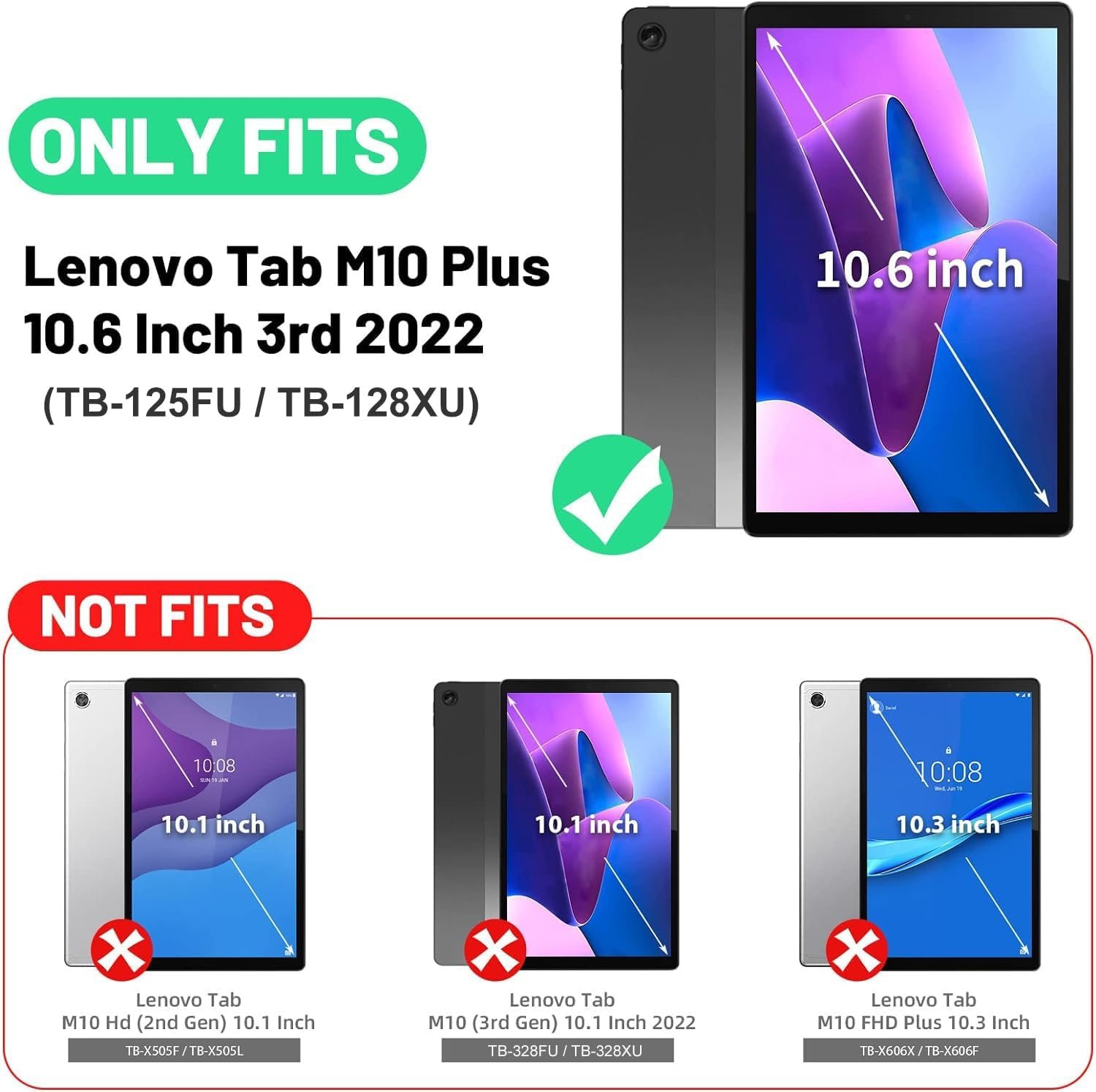 [Compatibility]: This Case Cover is only compatible with Lenovo Tab M10 Plus (3rd Gen) 10.6 inch Tablet TB125FU / TB128XU, (NOT compatible with any other Tablet/ipad/models). Please check your model before purchasing.