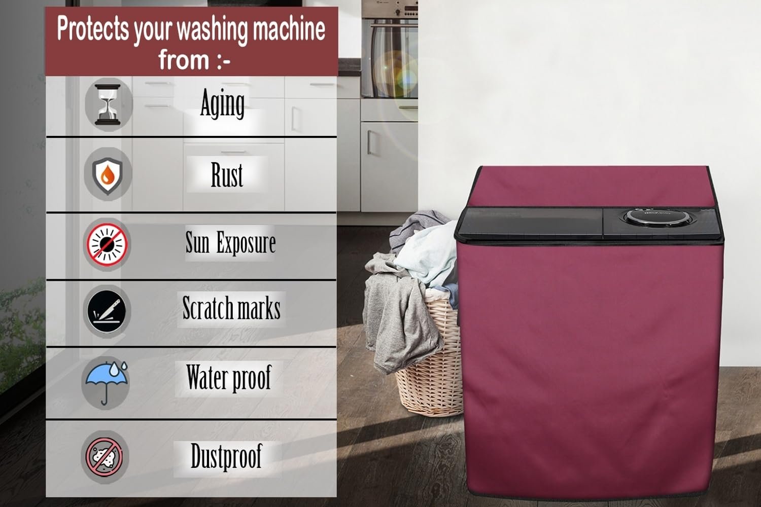 Cover Suitable for Semi Automatic Washing Machine Cover for LG 7 Kg, 7.5 Kg & 8 Kg, Color : Maroon, Material : Polyester