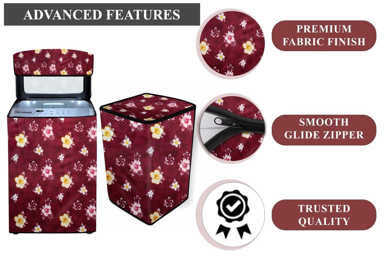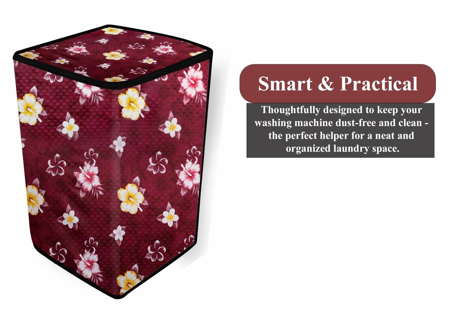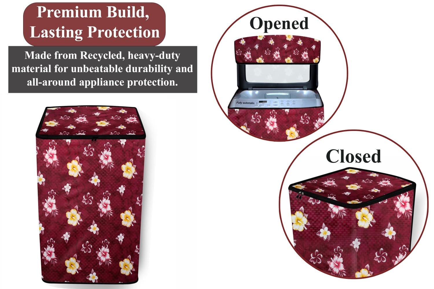 Cover Suitable for Top Load Fully Automatic Washing Machine Cover for Samsung 6 Kg, 6.2 Kg, 6.5 Kg, 7 Kg & 7.5 Kg, Color : Floral Pattern Red, Material : Polyvinyl Chloride (PVC)