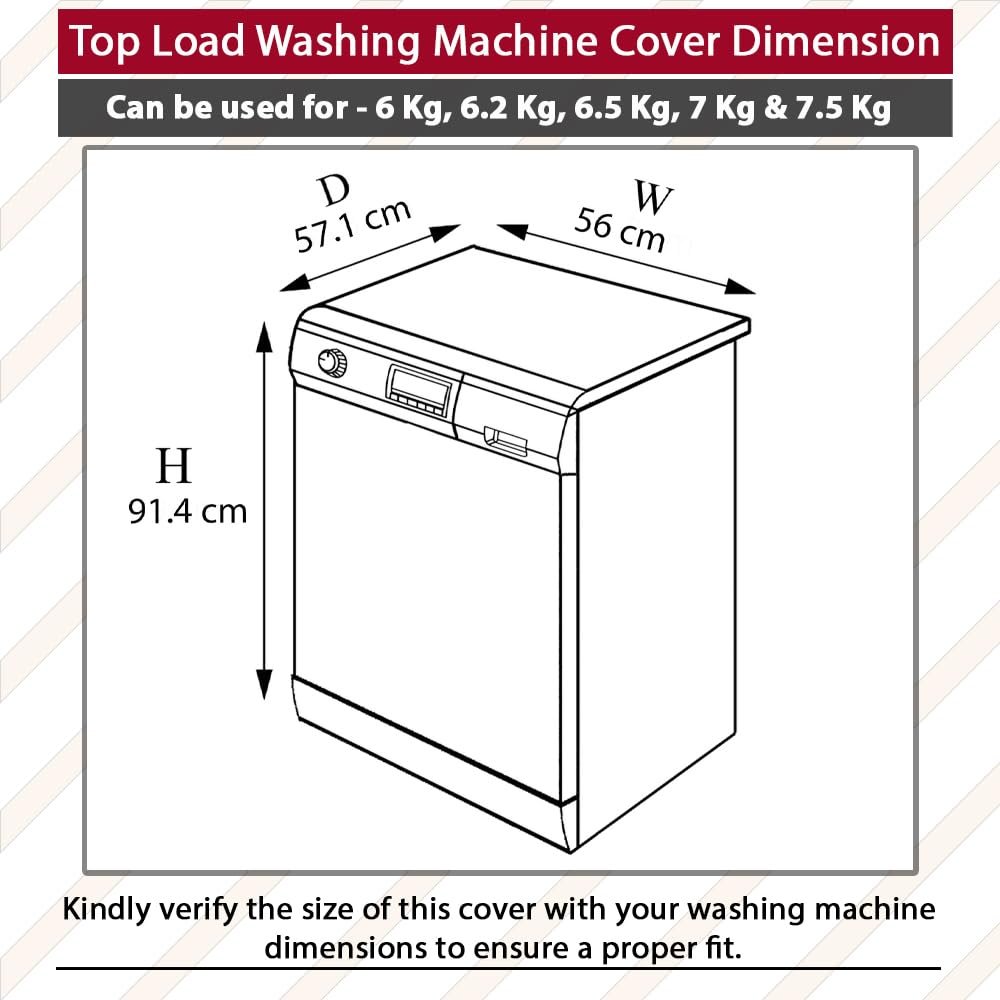 Washing machine cover for Fully-Automatic Top Loading, Washing machine cover dimension DxWxH In Cms: ( 57.1x56x91.4 ), In Inches: ( 22.5x22x36 )