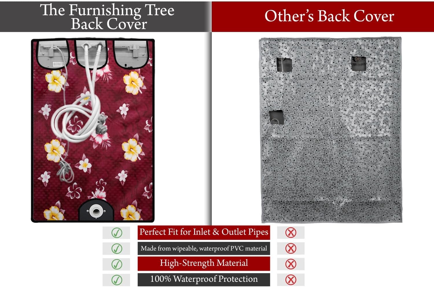 The Furnishing Tree PVC Waterproof Top Load Fully Automatic Washing Machine Cover Compatible for Samsung 6 Kg, 6.2 Kg, 6.5 Kg, 7 Kg & 7.5 Kg, In Cms: ( 57.1x56x91.4 ), Floral Pattern Red