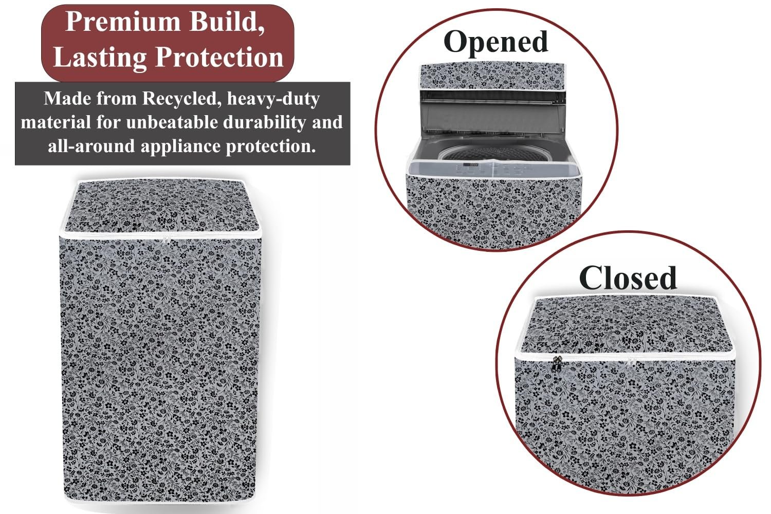 Cover Suitable for LG Top Load Washing Machine Cover for 7 Kg, 7.2 Kg, 7.5 Kg, 8 Kg, Material : Polyvinyl Chloride (PVC), Color : Floral Pattern Darkgrey