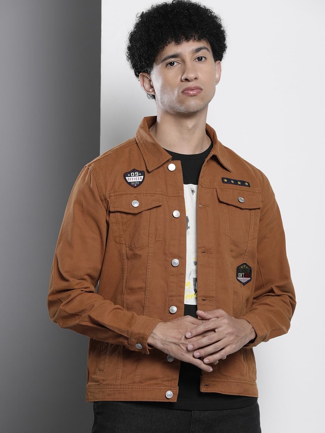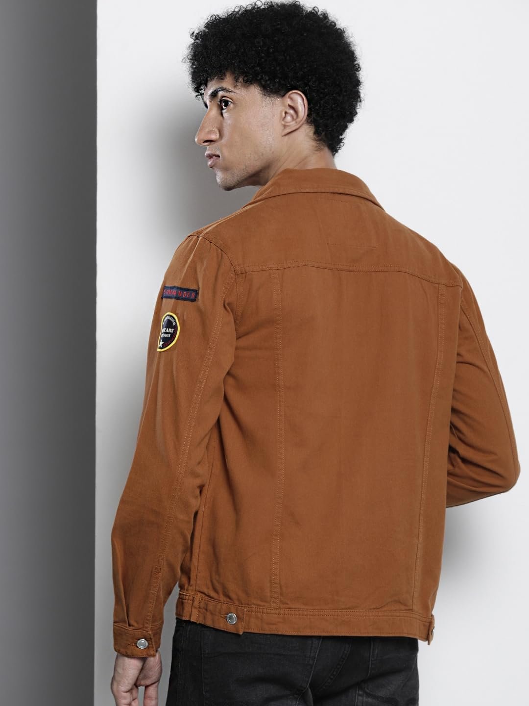 The Indian Garage Co Cotton Men Slim Fit Badges Trucker Standard Length Jacket