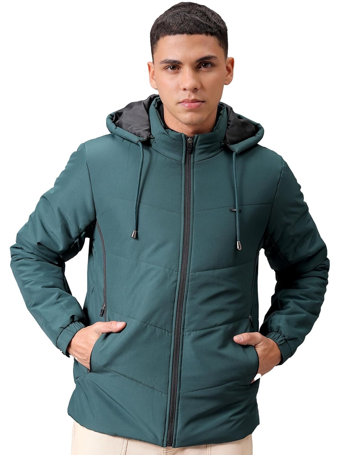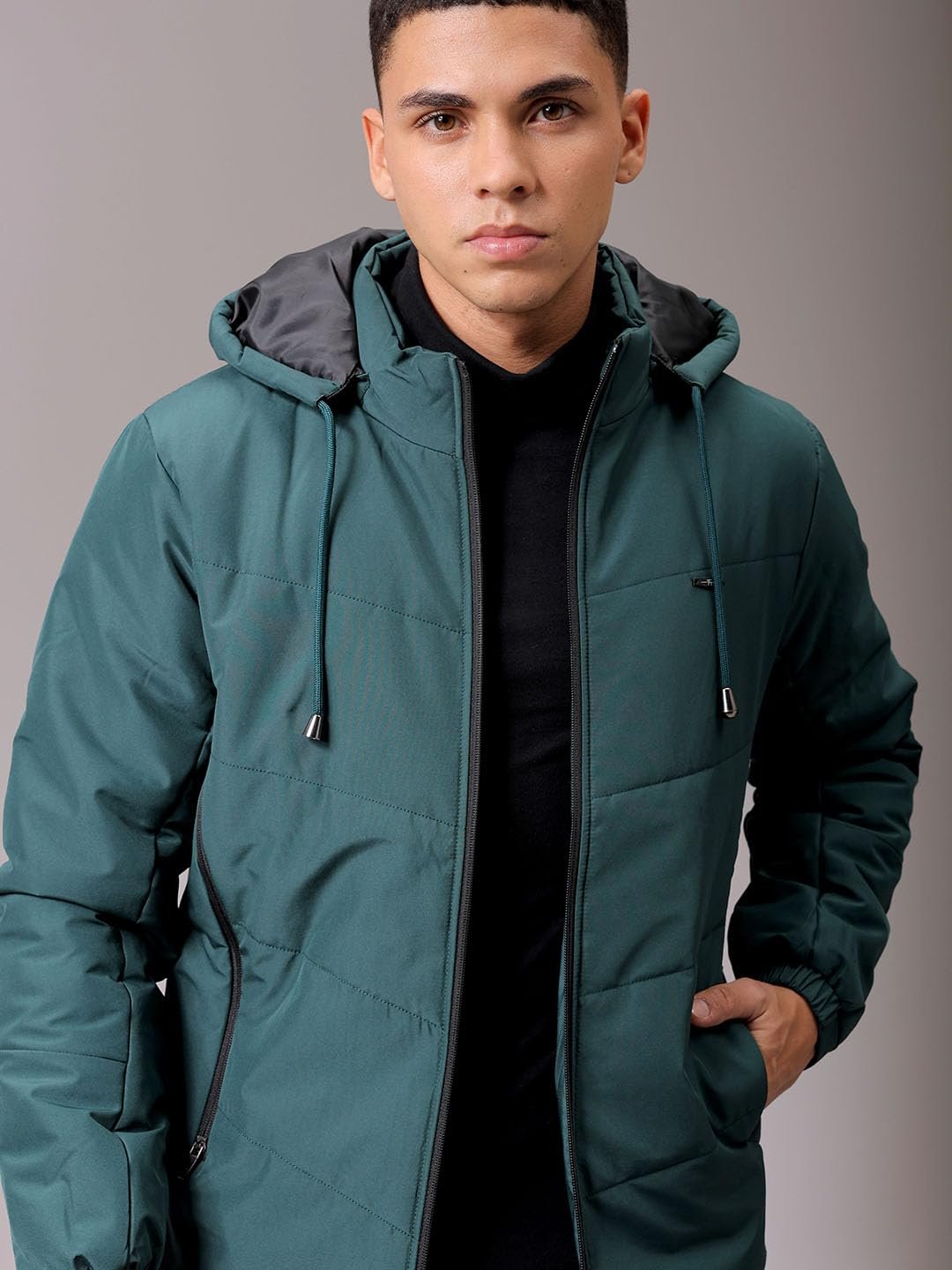 This The Indian Garage Co Men Black Slim Fit Solid Jacket has a Regular Length, Long Sleeves and Straight Hem