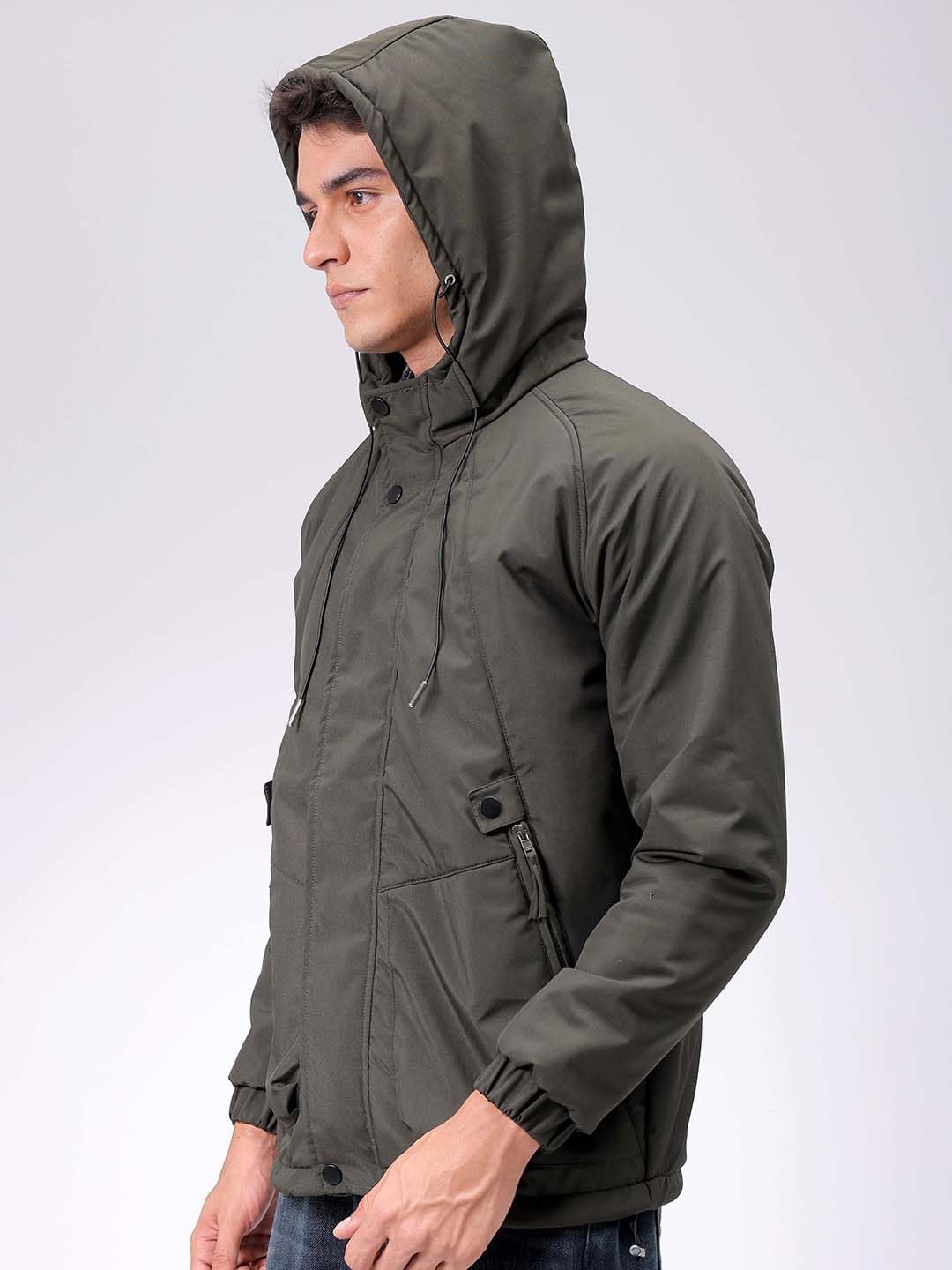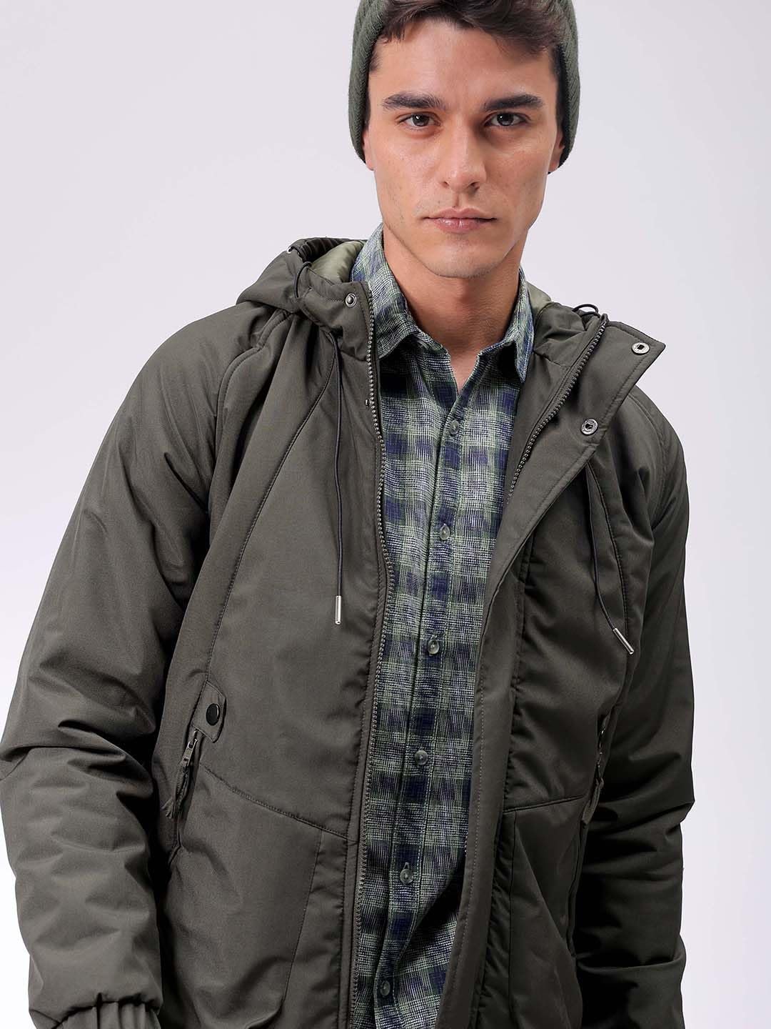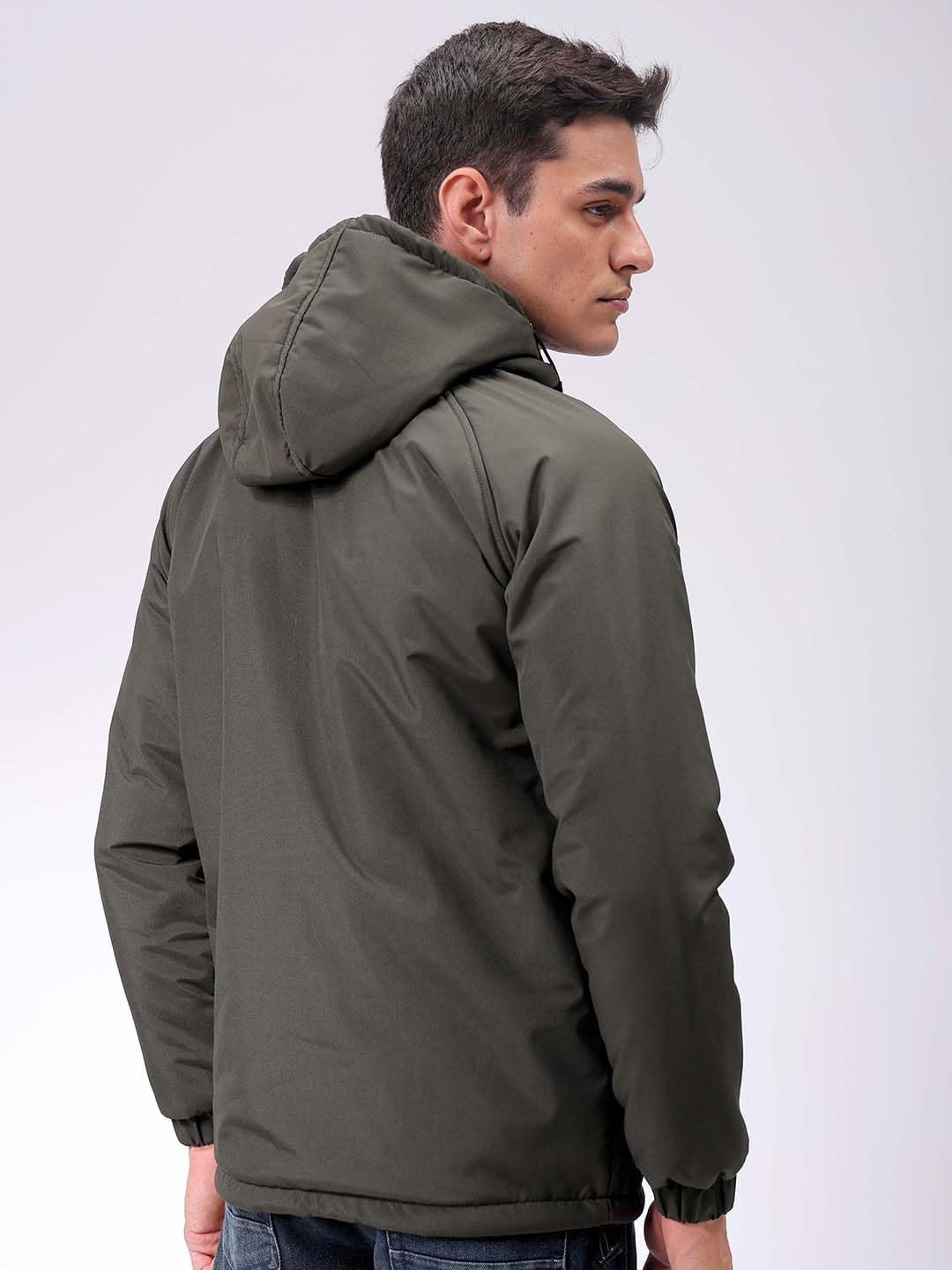 This The Indian Garage Co Men Olive Slim Fit Solid Jacket has a Regular Length, Long Sleeves and Straight Hem