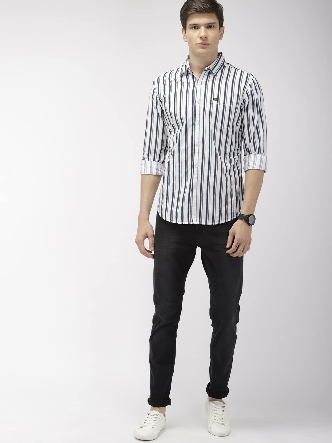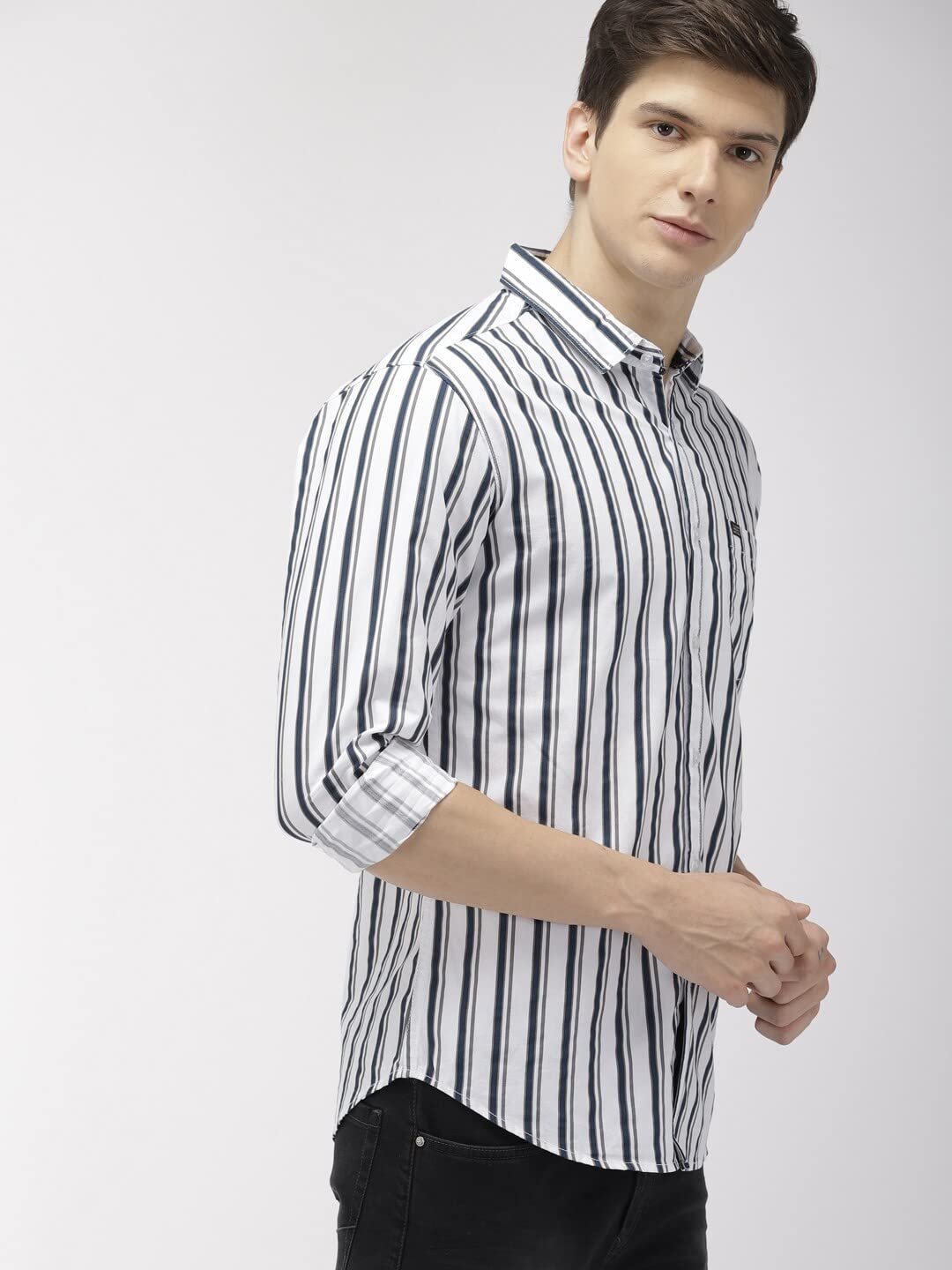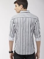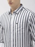 The Indian Garage Co Navy Blue Slim Fit Striped Shirts