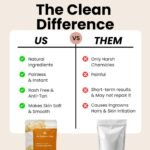 Natural & Herbal Formula: Enriched with turmeric, sandalwood, and other Ayurvedic ingredients that soothe and brighten skin while removing hair.