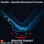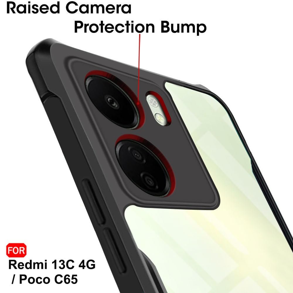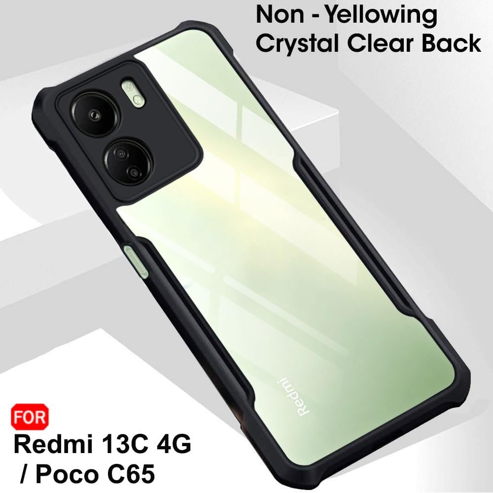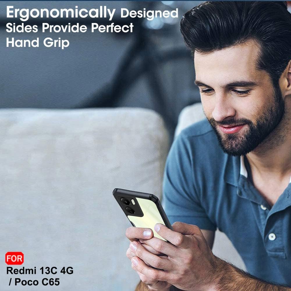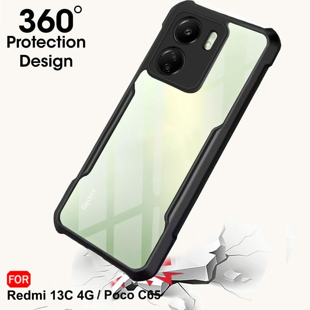 TheGiftKart Crystal Clear Back Cover Case for Mi Redmi 13C 4G / Poco C65 | 360 Degree Protection | Shock Proof Design | Transparent Back Cover Case for Redmi 13C / Poco C65 (PC & TPU, Black Bumper)
