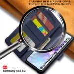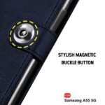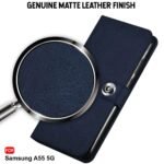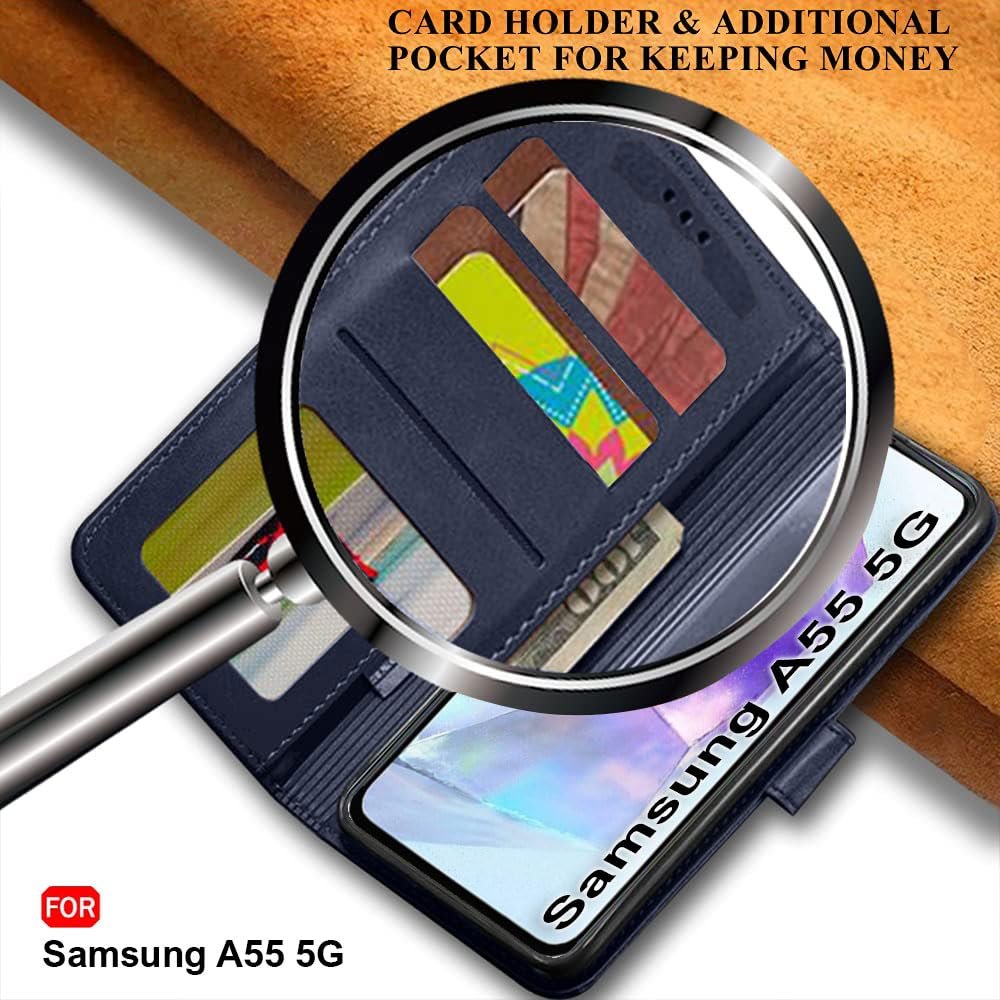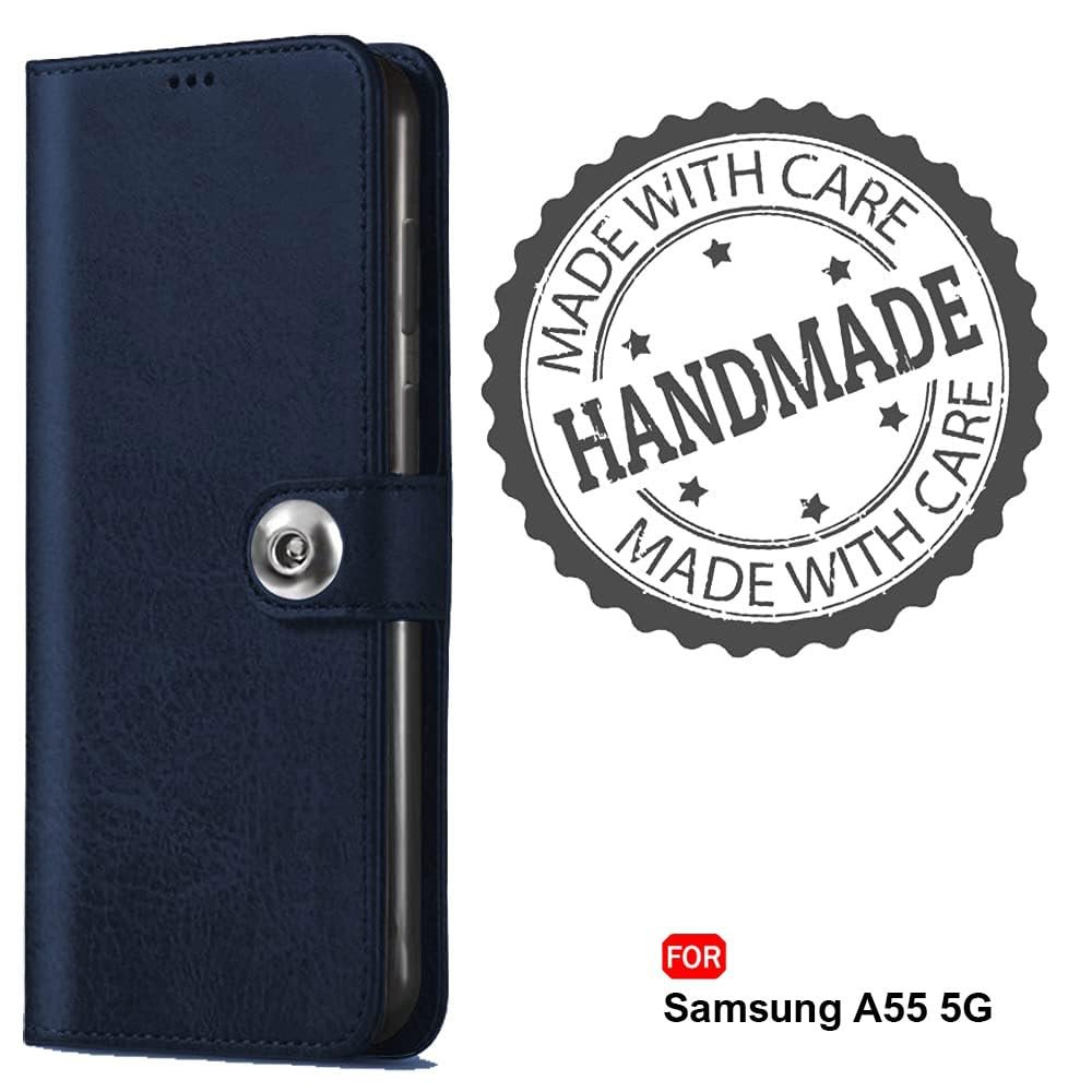 TheGiftKart Flip Cover Back Case for Samsung Galaxy A55 5G | Genuine Leather Finish | Designer Button | Inbuilt Pockets & Stand | Flip Back Cover Case for Samsung Galaxy A55 5G (Faux Leather, Blue)