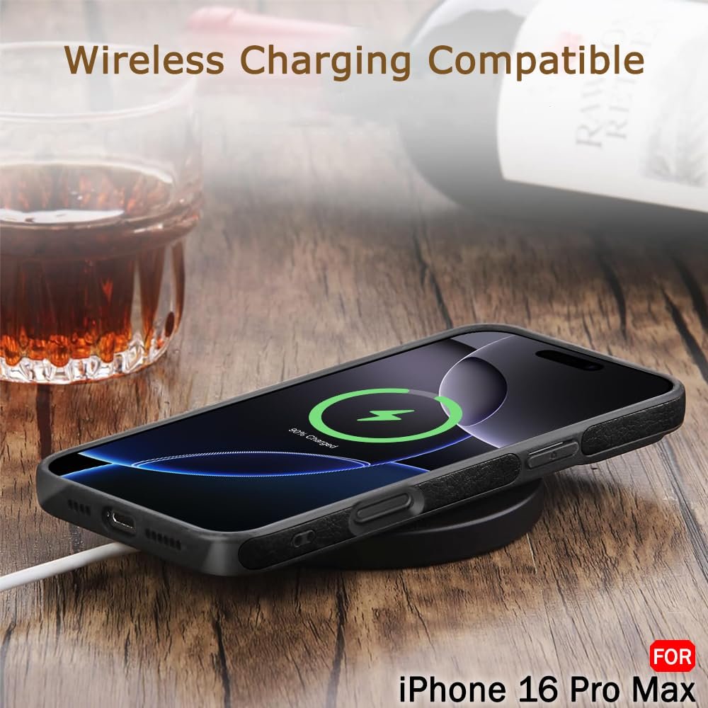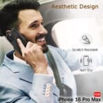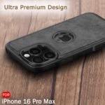 TheGiftKart Genuine Leather Finish Back Cover Case for iPhone 16 Pro Max | Shockproof Design | Raised Edges for Camera & Screen Protection | Stunning Minimalist Design Back Cover Case (Black, Chrome)