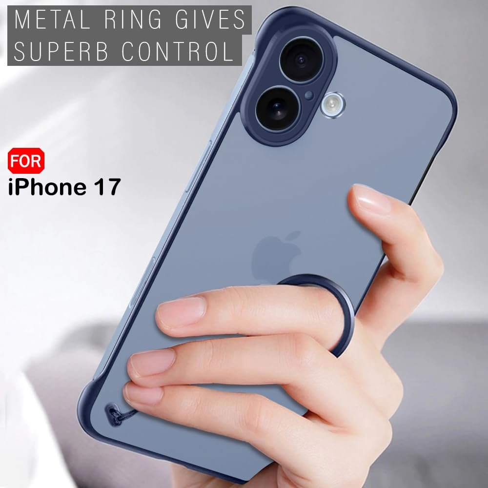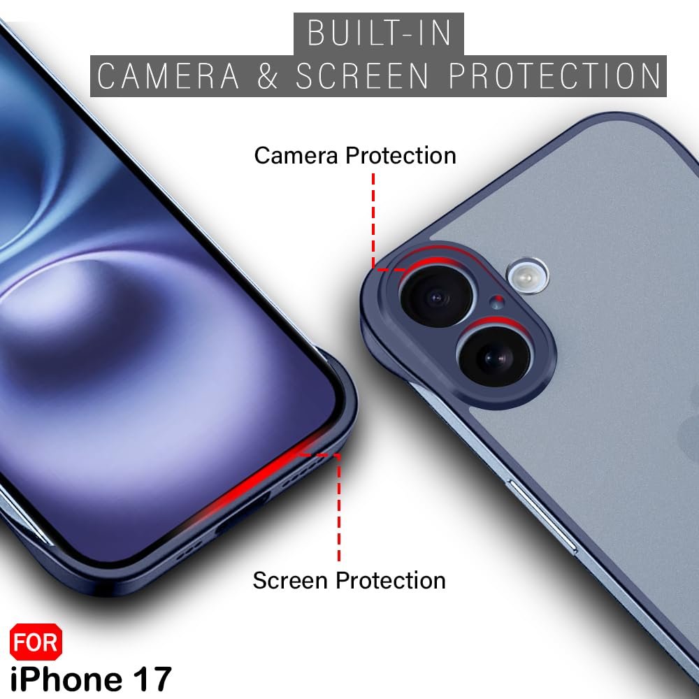 TheGiftKart Hybrid Ultimate Slim Back Case Cover for iPhone 17 | Lightweight Profile | Frosted Matte Translucent Hard Back Case Cover for iPhone 17 (PC & TPU, Blue Sides)