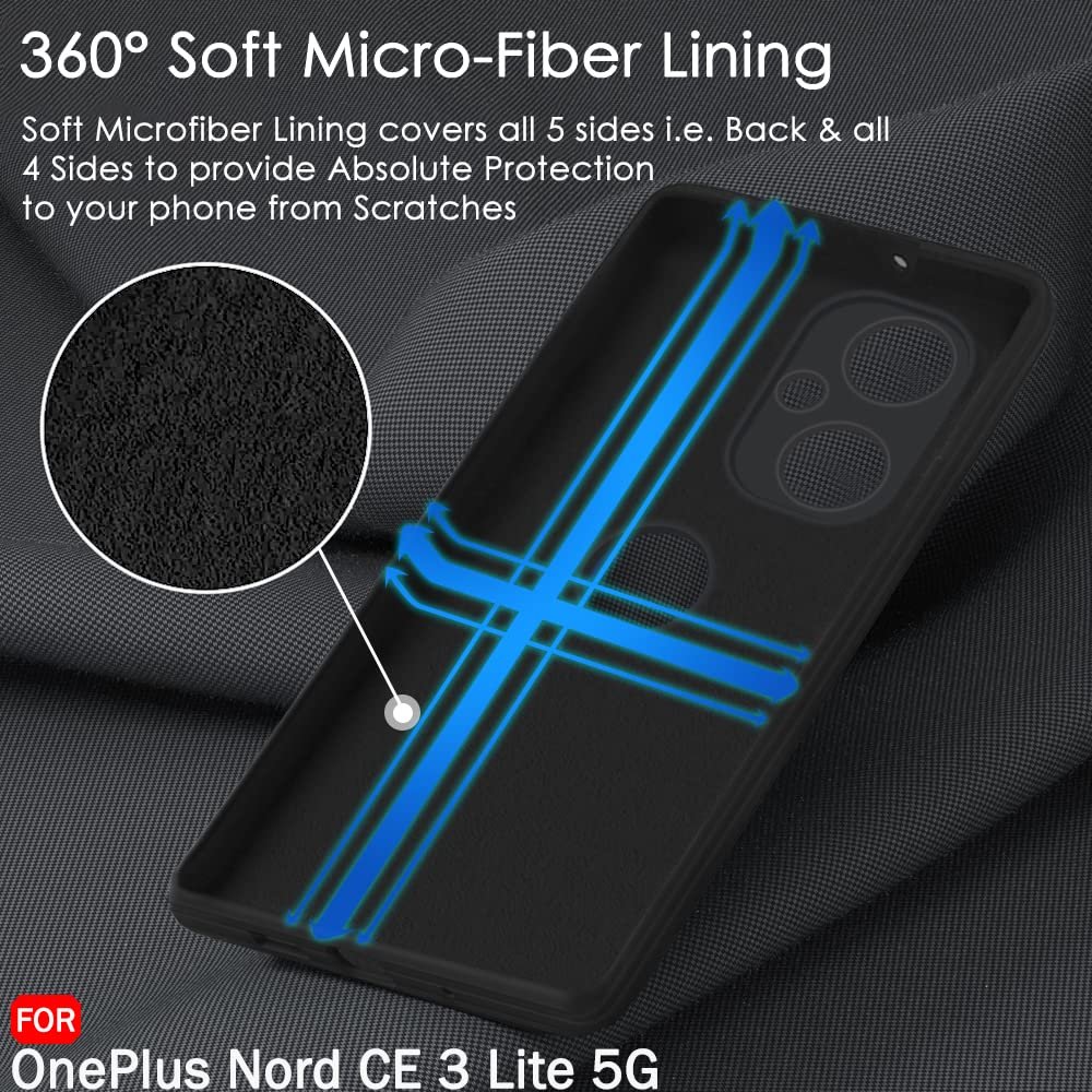 TheGiftKart Liquid Silicone Back Cover Case | Soft Micro-Fibre Lining Inside | Camera Protection Bump | Shockproof Back Cover Case for OnePlus Nord CE 3 Lite 5G (Black)