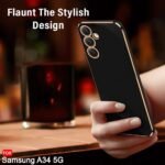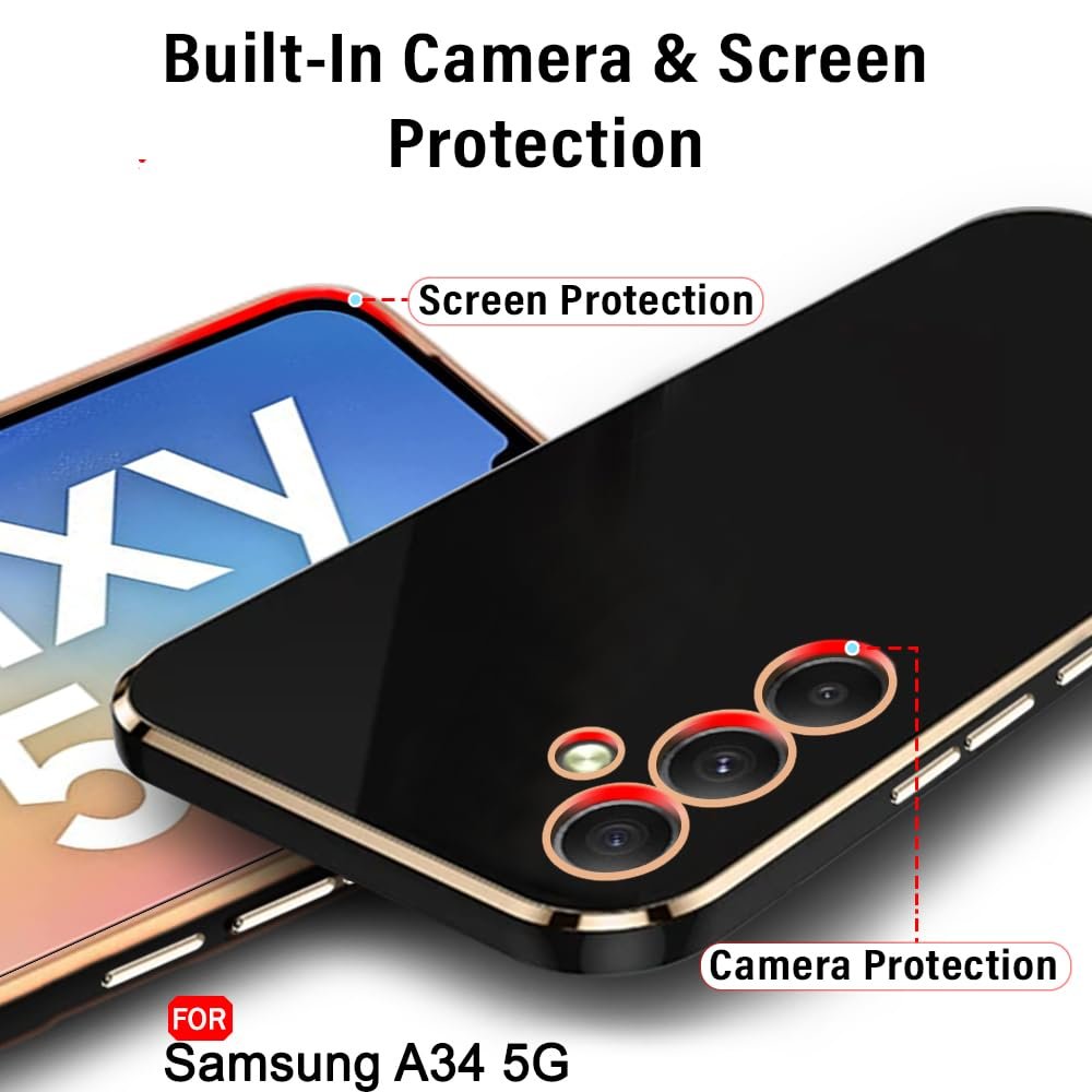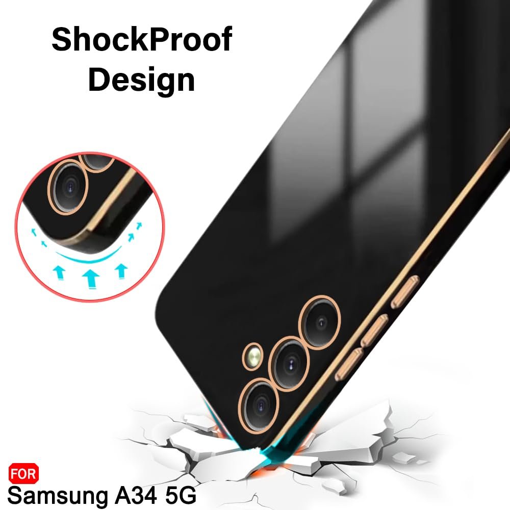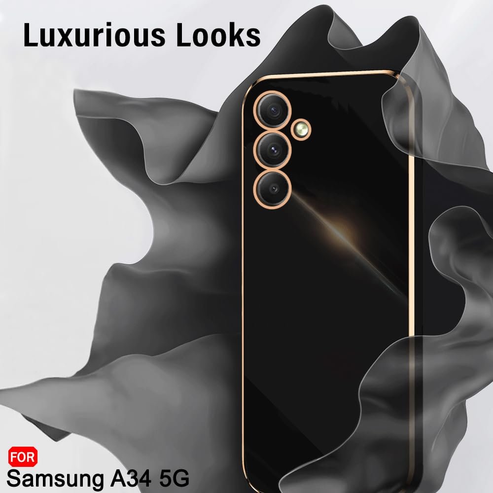 TheGiftKart Luxurious Golden-Plated Back Cover Case for Samsung Galaxy A34 5G | Raised Lips for Camera & Screen Protection | Shockproof Design | Stylish Back Cover for Samsung A34 (TPU, Black)