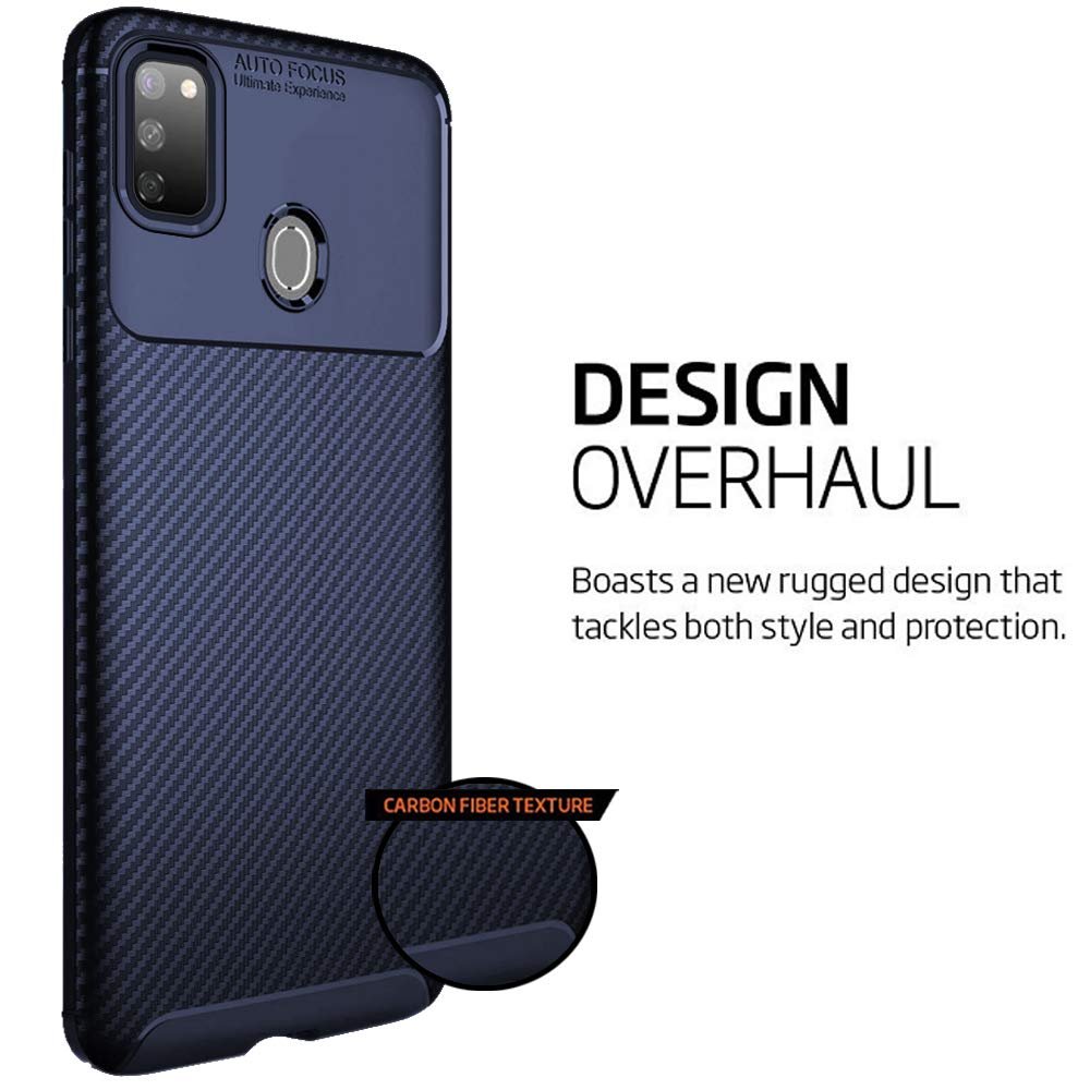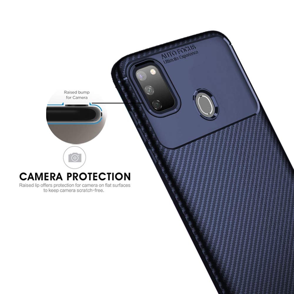 TheGiftKart Rugged Carbon Fibre TPU Armor Back Cover Case for Samsung Galaxy M21 / M21 2021 Edition / M30s (Blue)