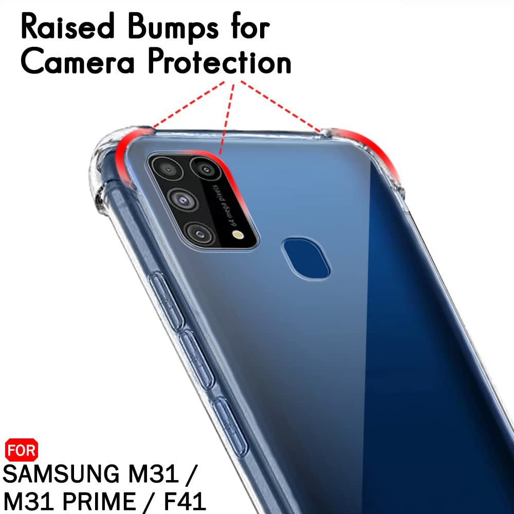 TheGiftKart Shockproof Clear Back Cover Case for Samsung Galaxy M31 Prime / F41 / M31 | 360 Degree Protection | Hard Transparent Back Cover Case for Samsung M31 Prime (PC & TPU, Transparent Bumper)