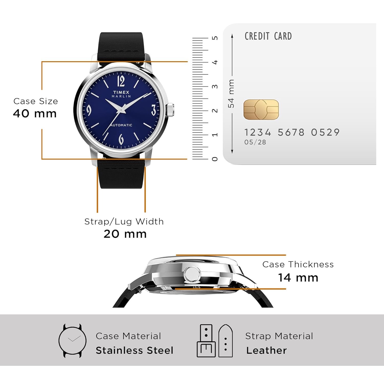 TIMEX Marlin Mechanical Automatic Watch for Man with Blue Round Dial & Black Leather Strap Band Water Resistant Men’s Wrist Watches – TW2W93100UJ