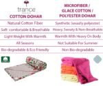 Reversible Design: Trance dohar provides you optimal comfort and adds elegance to your room decor with its reversible design – Attractive Designs on Both Sides. Trance dohars have same fabric edging/piping, which gives trance dohars has its own uniqueness for an elegant look and feel.