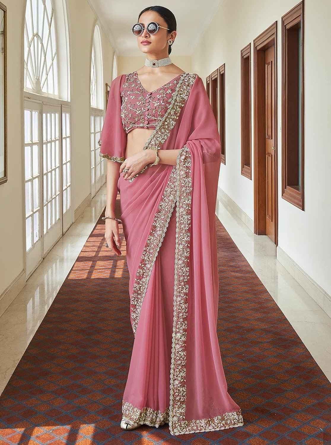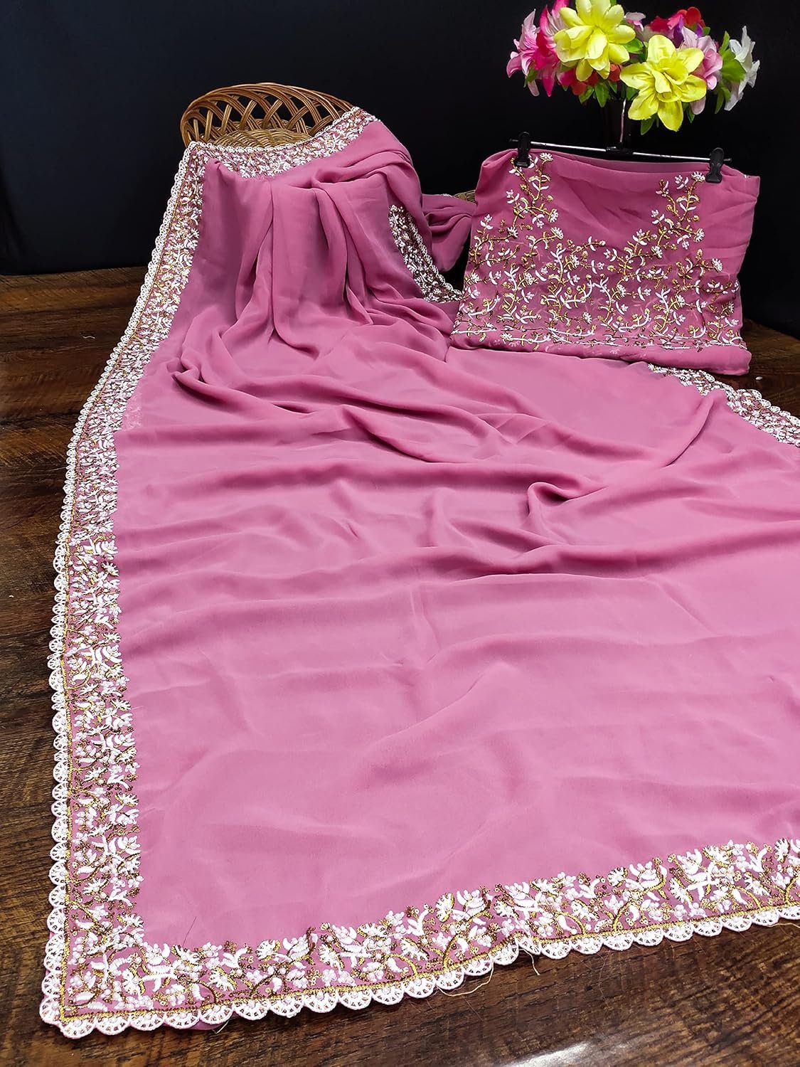 Customers appreciate the saree’s quality and color. They find the material good and the embroidery work nice. The saree is suitable for wedding occasions and party wear.