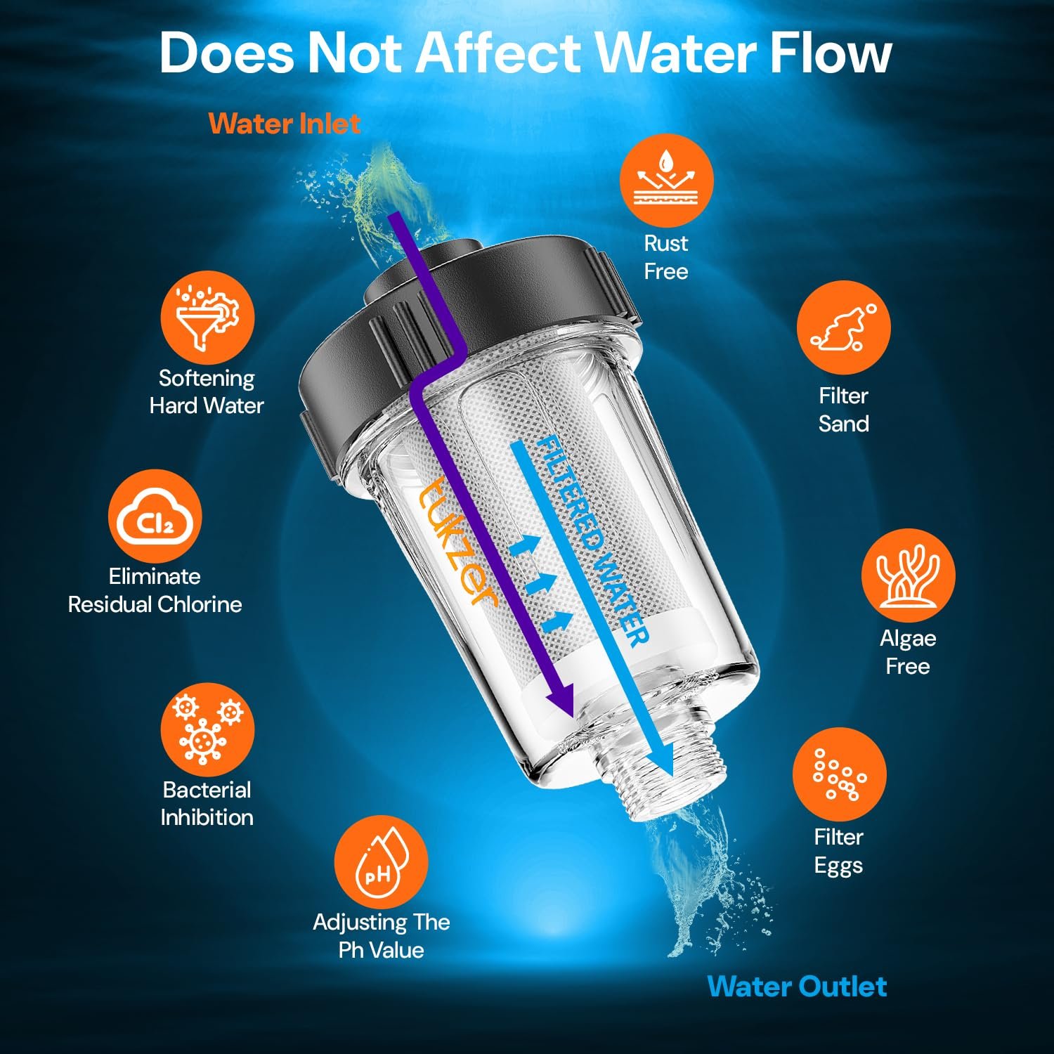 Activated Carbon filtration : The advanced activated carbon filtration process eliminates residual chlorine, rust, algae, red worm, parasite, odor and sediment, and provides you with healthier and cleaner water.