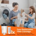 Easy Installation : Simply connect the rotatable cover side of the filter to the tap. Effortless installation requires no professional plumber. It was designed to perfectly fit washing machine connectors.