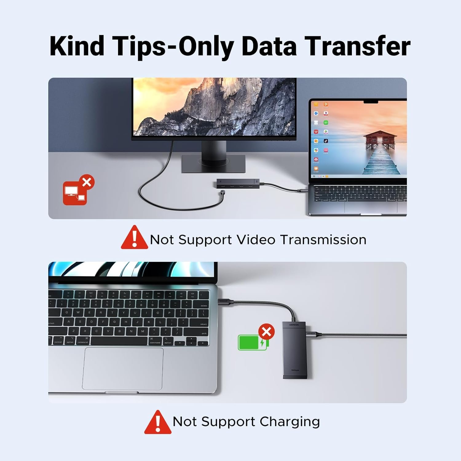 4-Ports USB C Splitter: The 4-in-1 USB C hub transforms one of your laptop’s USB-C ports into 4 USB-C data ports. Perfectly connect all your USB peripherals in your daily workflow to meet your present and future needs. (Note: The USB-C ports don’t support video output or charging)