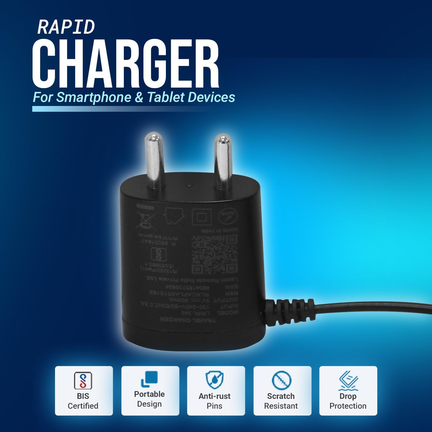 This compact and lightweight mobile charger adapter is compatible with most feature phones (Nokia, Samsung, Micromax, Lava, Karbonn, Jio Phone, etc.), as well as small electronic devices like Bluetooth speakers, earphones, MP3 players, and rechargeable gadgets.