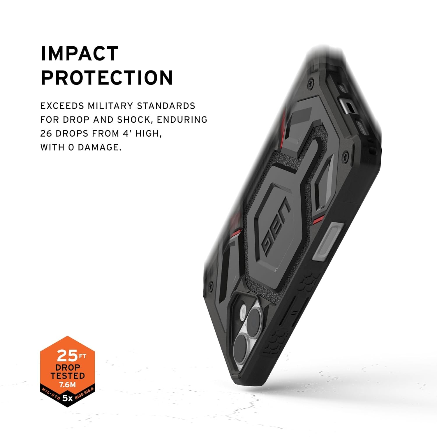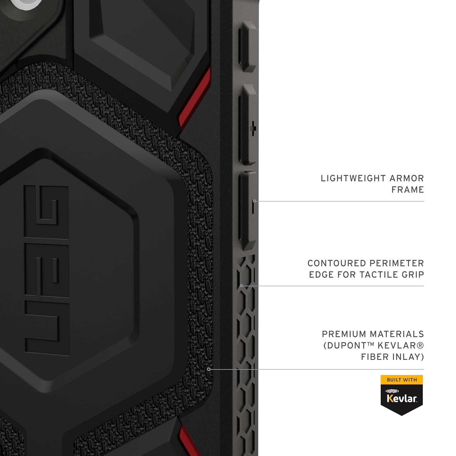 MULTI-LAYER PROTECTION: Handcrafted with premium materials featuring a feather-light construction with 5 layers of protection staring UAG’s signature armor frame, shock-resistant core, layered with DuPont Kevlar Material, a polycarbonate shear plate, alloy metal hardware, and impact-resistant rubber surround.