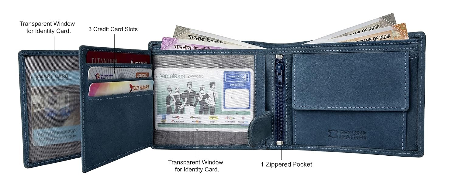 COMPACT YET SPACIOUS – Unique design and compact size, this wallet is not at all bulky. The size is just perfect to fit in your pocket with ease or to be kept in your travel bag. It is a perfect combination of size and space with numerous compartments for all your cards , bills, receipts and also a photo of your loved one.