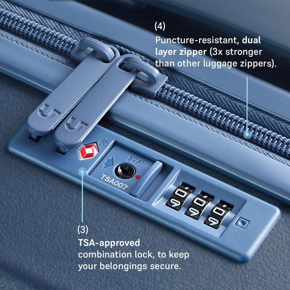 [Ultimate Travel Security]: Keep your belongings secure with our built-in, internationally recognized, keyless TSA-approved lock that allows airport security to unlock and relock your luggage without damaging it. Our dual-layer, tamper-proof zipper (3x stronger than regular zippers) adds an extra layer of protection against theft.