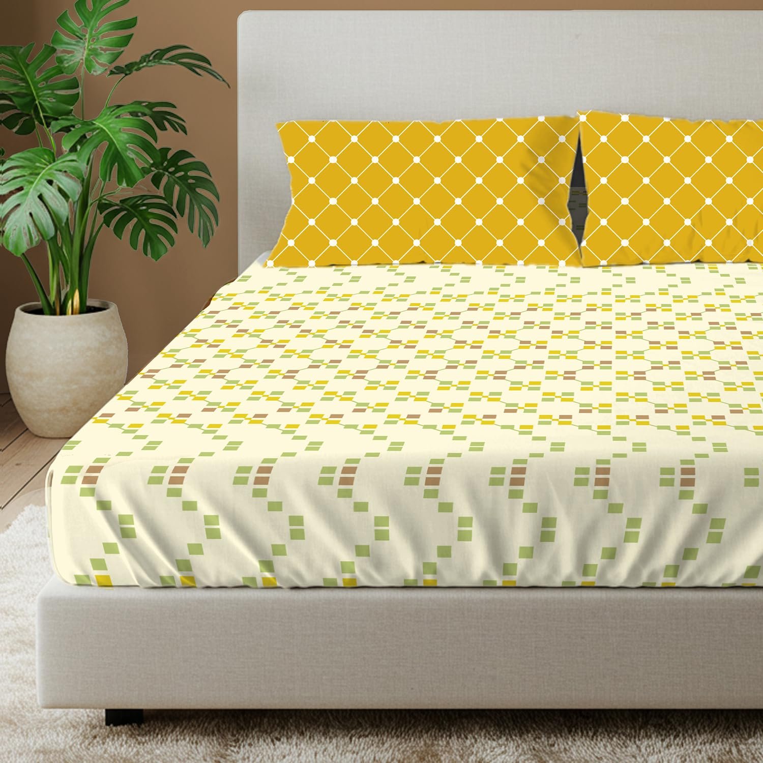 Modern Design: Cotton bedsheets for double and king bed with contrasting pillow covers enhance bedroom decor.
