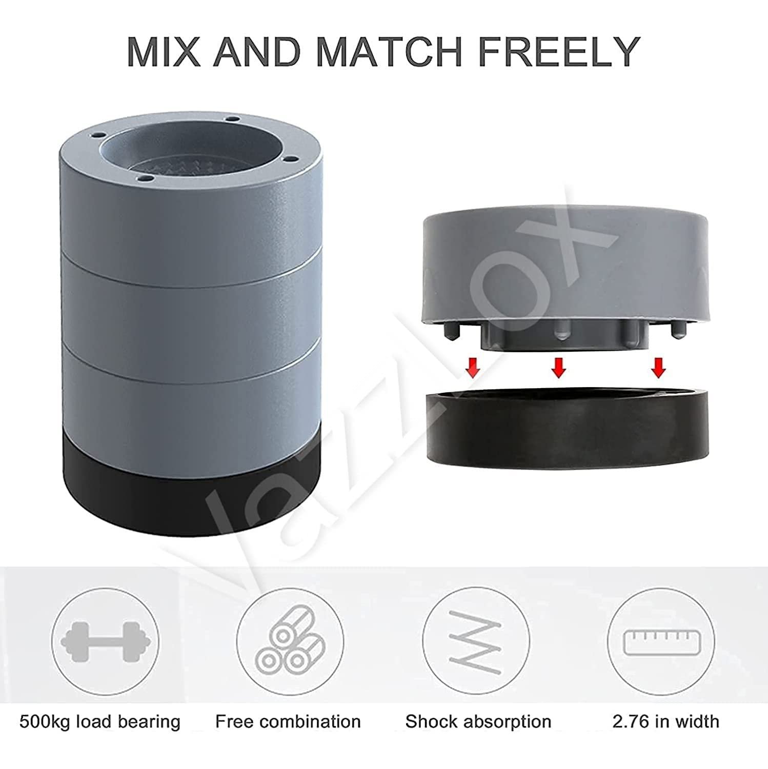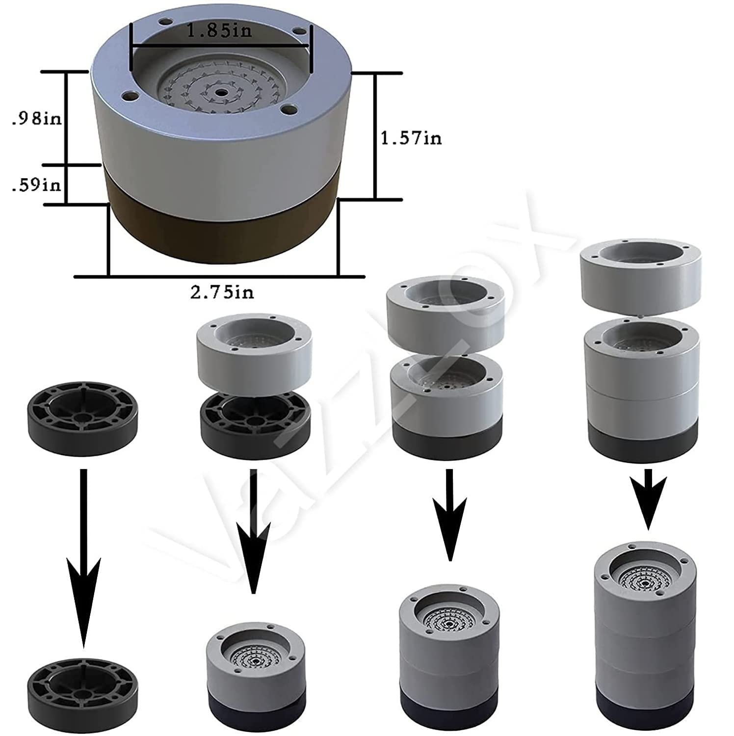 ADJUSTABLE HEIGHT: Add or remove the grey PP part to adjust the height to fit your machine if necessary. However, vibration pads for washing machine ‘s rubber and PP combination are designed to fit most of the damping situation.